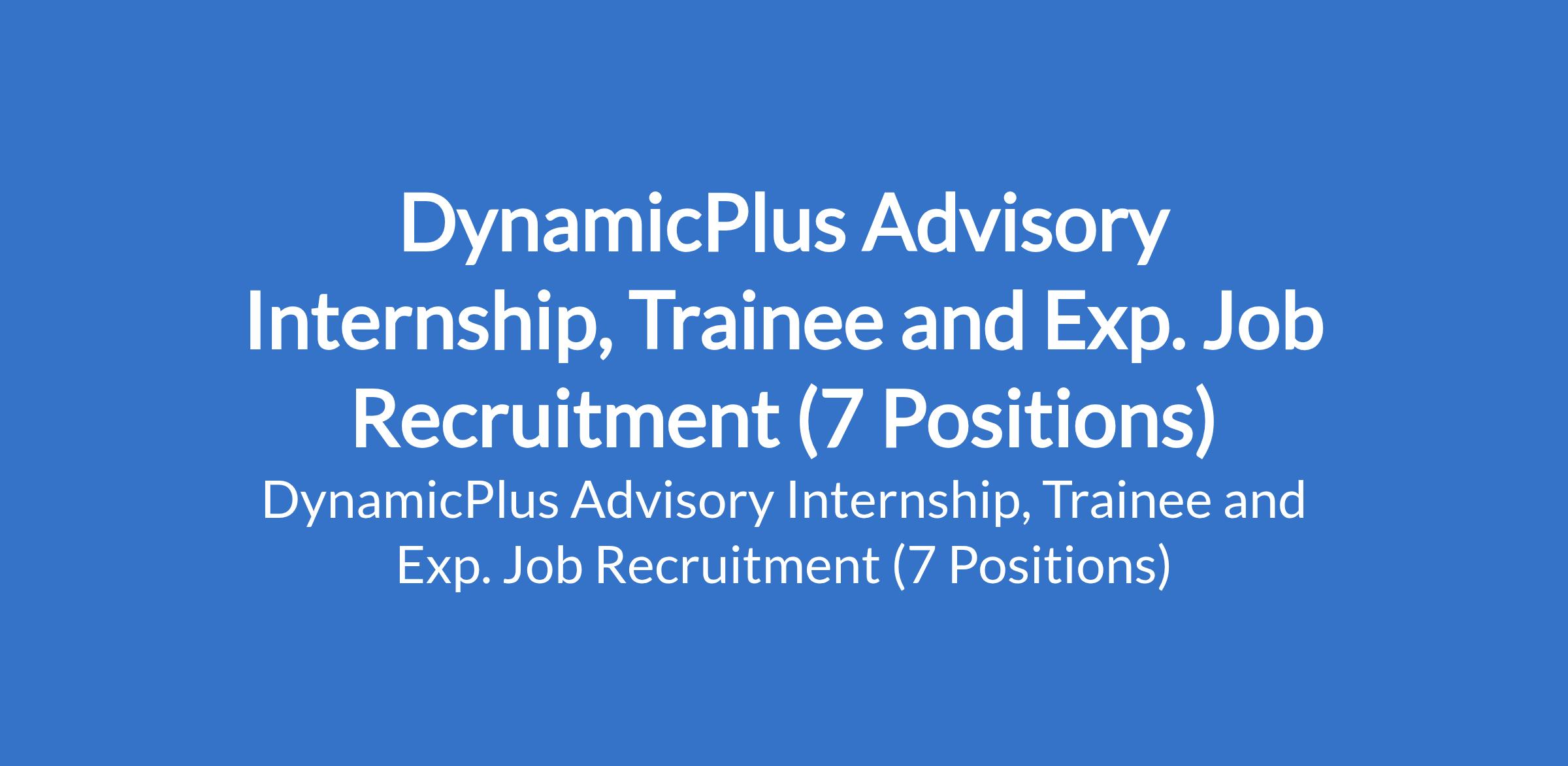 DynamicPlus Advisory is recruiting suitable candidates to fill the following internship, trainee and experienced positions in Lagos State: Entry-Level Business Development Officer, Architect, Business Development Officer, Trainee Counselor, HR Intern, Sales and Marketing Executive, and Social Media / Digital Marketing Officer.