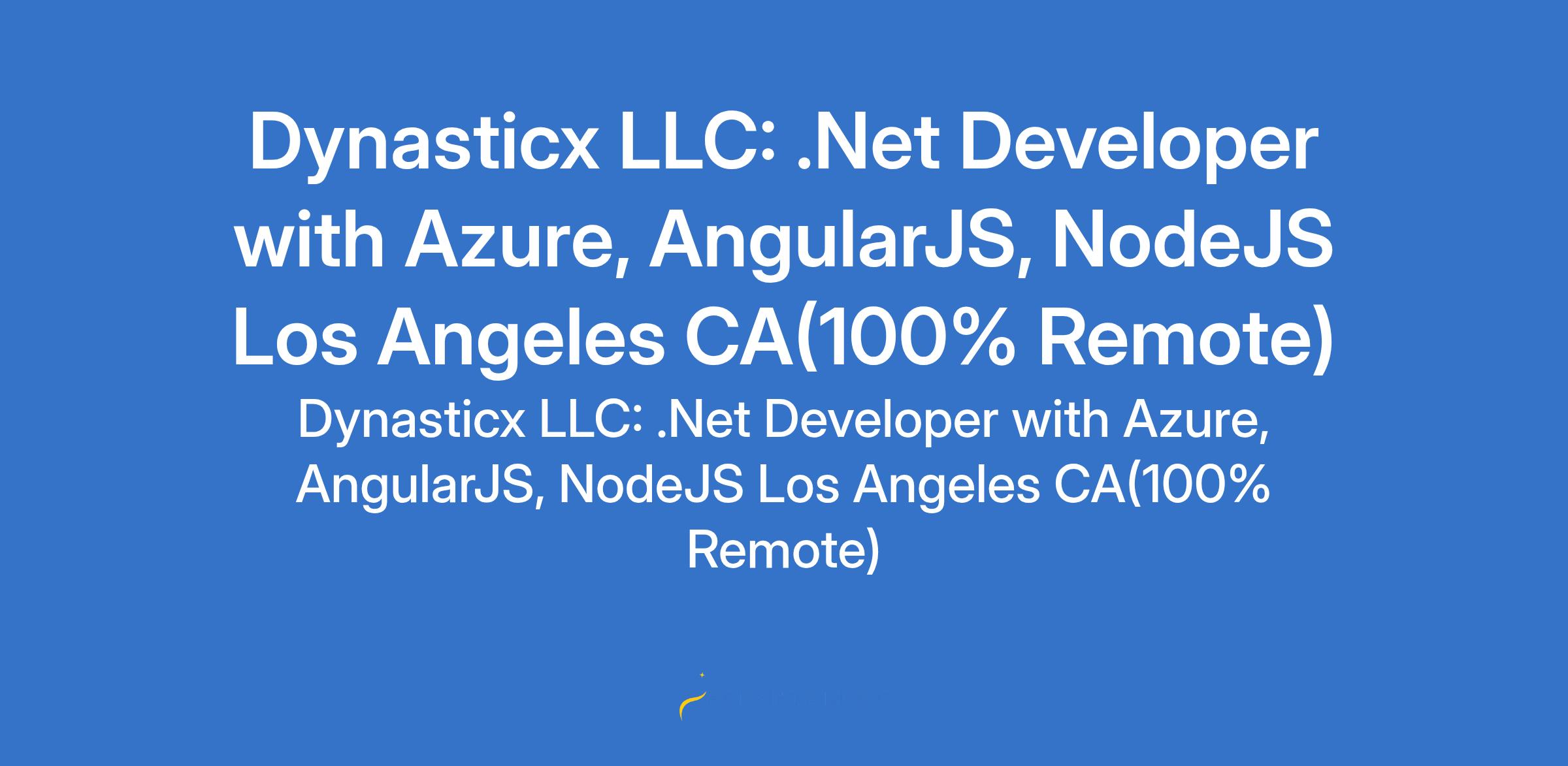 Hi Folks, Hope you are doing great! .Net Developer with Azure, AngularJS, NodeJS Los Angeles CA(100% Remote) Long Term Contract(2 Years) Max Rate: $45/hr on W2 OR $55/hr on C2C Only USC OR GC Note: Need .Net Developer with Angular with 8+ Version, NodeJS, React, Azure and Azure Devops