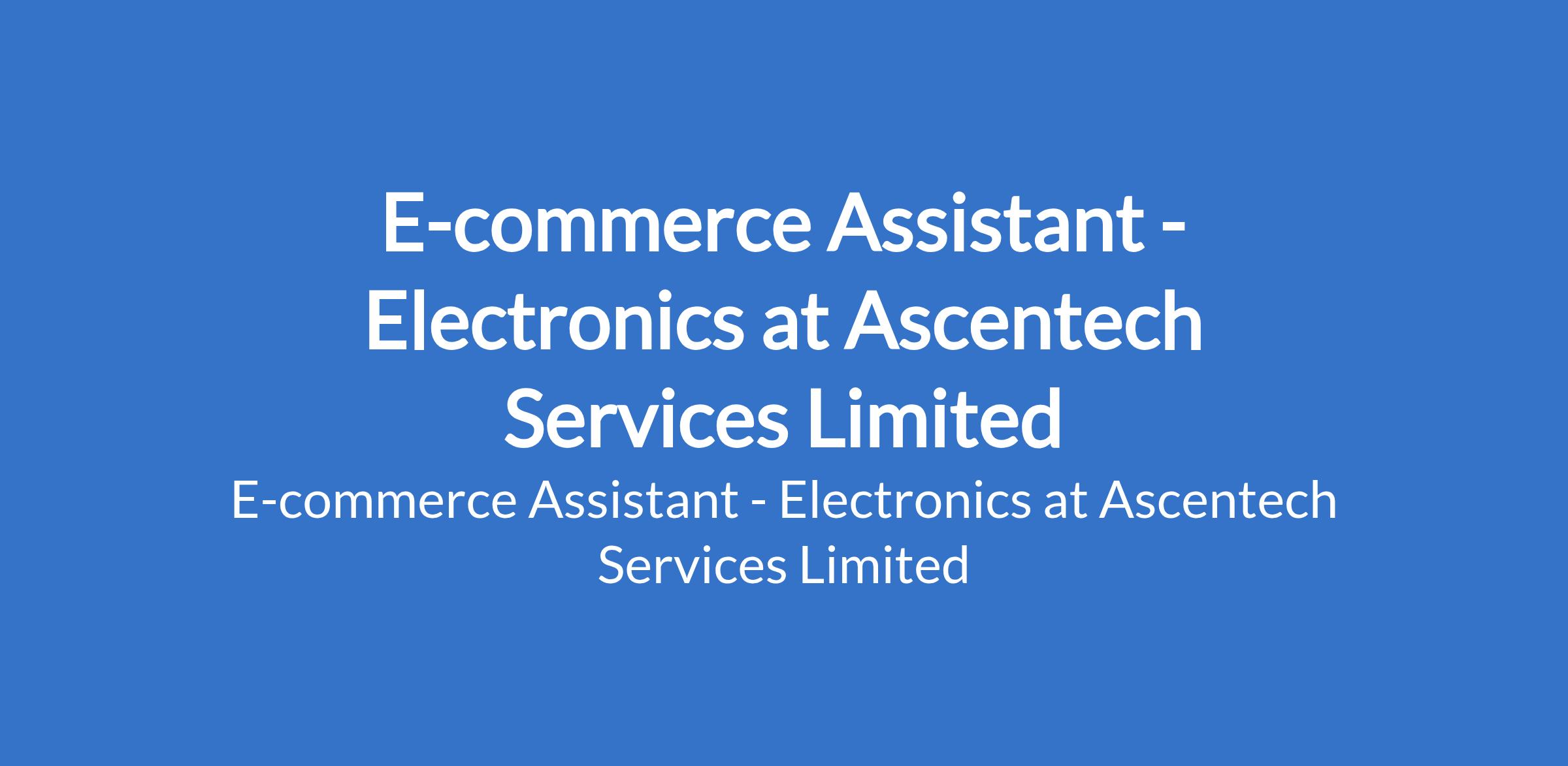 Ascentech Services Limited is recruiting to fill the position of: E-commerce Assistant - Electronics. The position is located in Okoko, Lagos State. Salary: N100,000 - N150,000 / month. Interested candidates should possess a Bachelors Degree or HND in Business Administration, Marketing, E-Commerce, or a related field with a minimum of 2 years of experience in an e-commerce or online retail role within an electronics company.