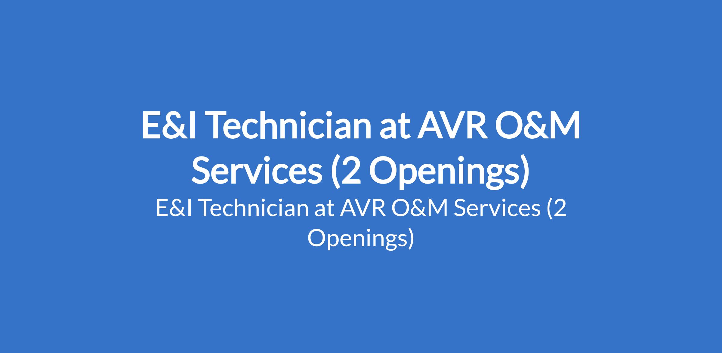 AVR O&M Services is recruiting to fill the position of: E&I Technician. The position is located in Kano State. Interested candidates should possess a relevant qualification with at least 5 years experience in operation & Management (O&M) in power plant.