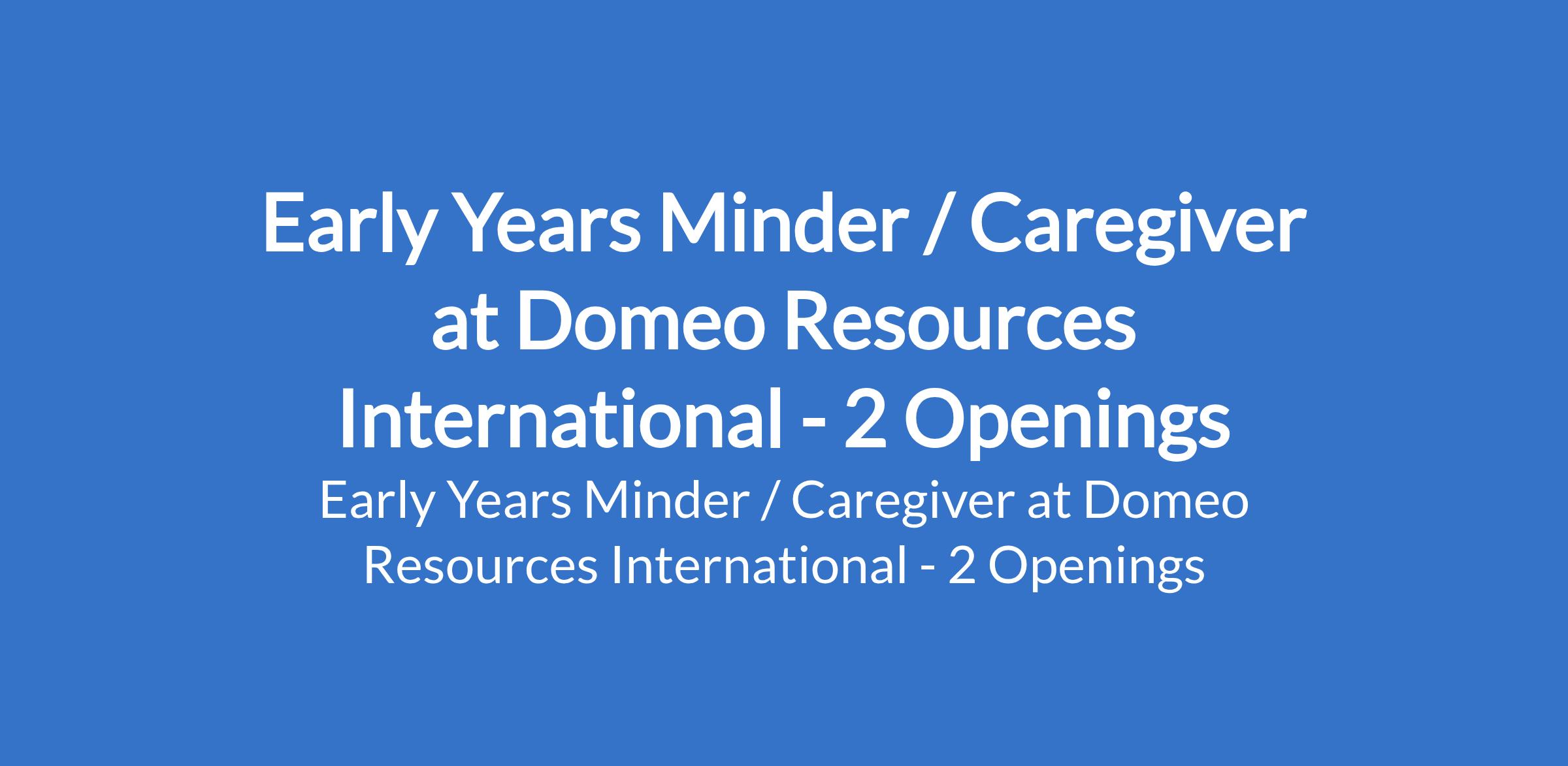Domeo Resources International is recruiting to fill the position of: Early Years Minder/ Caregiver. The position is located in Abuja (FCT) and Lagos State. Interested candidates should possess a Degree in a related field, Certification in child care, early childhood education and first aid is an advantage with a minimum of 2 years experience working with children in a similar capacity.