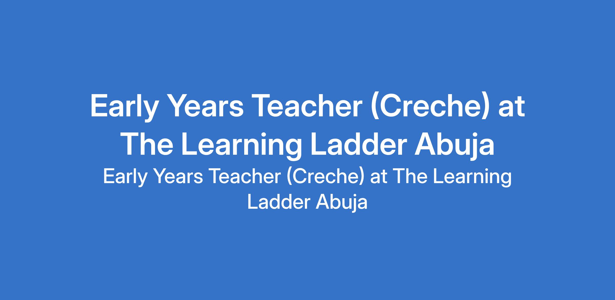 The Learning Ladder Abuja is recruiting to fill the position of: Early Years Teacher (Creche). The position is located in Abuja (FCT). Salary: N100,000 monthly. Interested candidates should possess a Degree or NCE qualification in Early Childhood Education (Montessori experience a plus) with a minimum of 1 year experience with children aged 5 months 5 years.