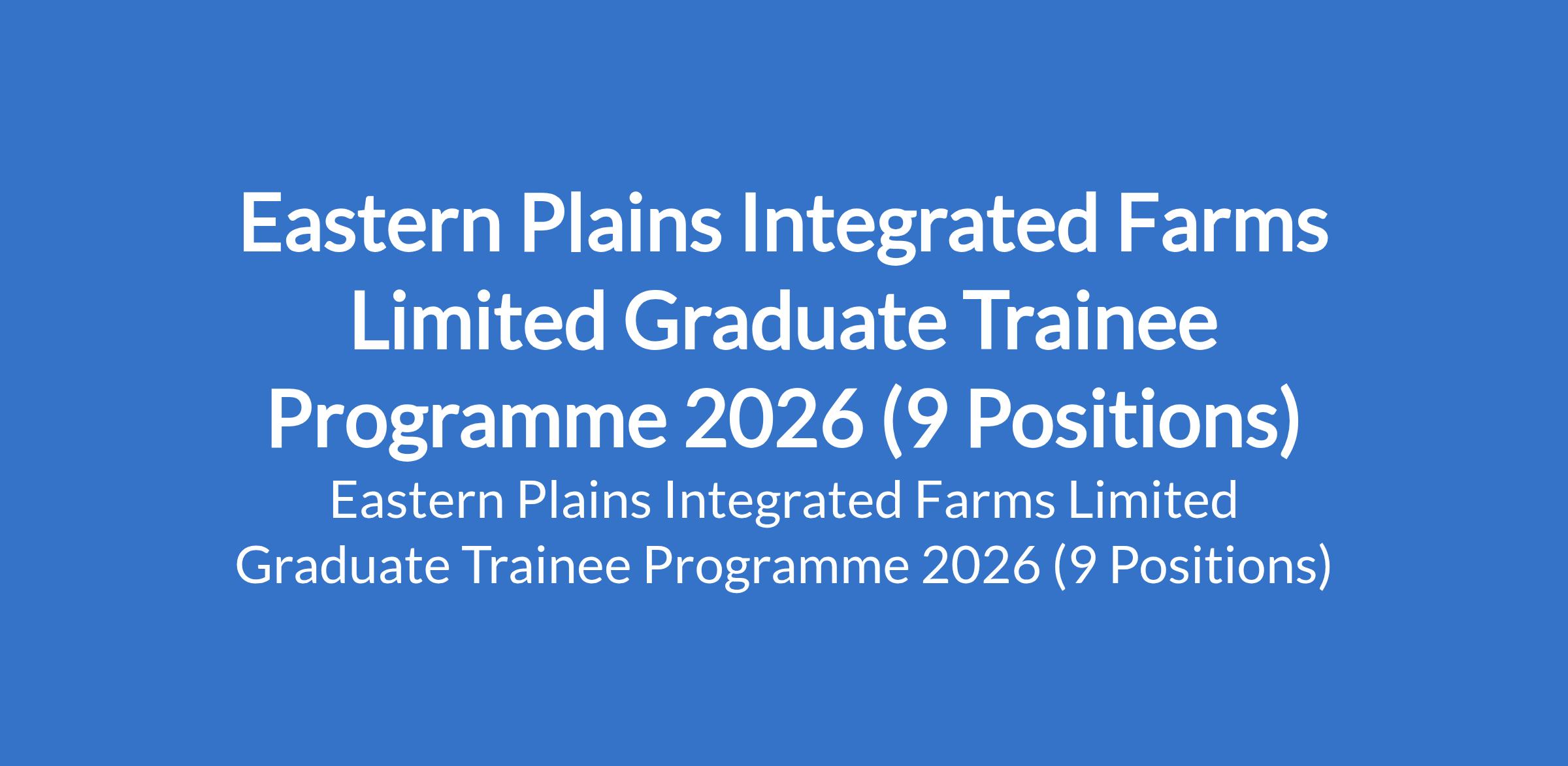 Eastern Plains Integrated Farms Limited is recruiting suitable candidates to fill the following graduate trainee positions in Anambra State: Engineering, HR Officer, Sales Officer, Business Analyst, Project Officer, Procurement Officer, Pen Supervisor, Supply Chain Officer, and Inventory Officer.