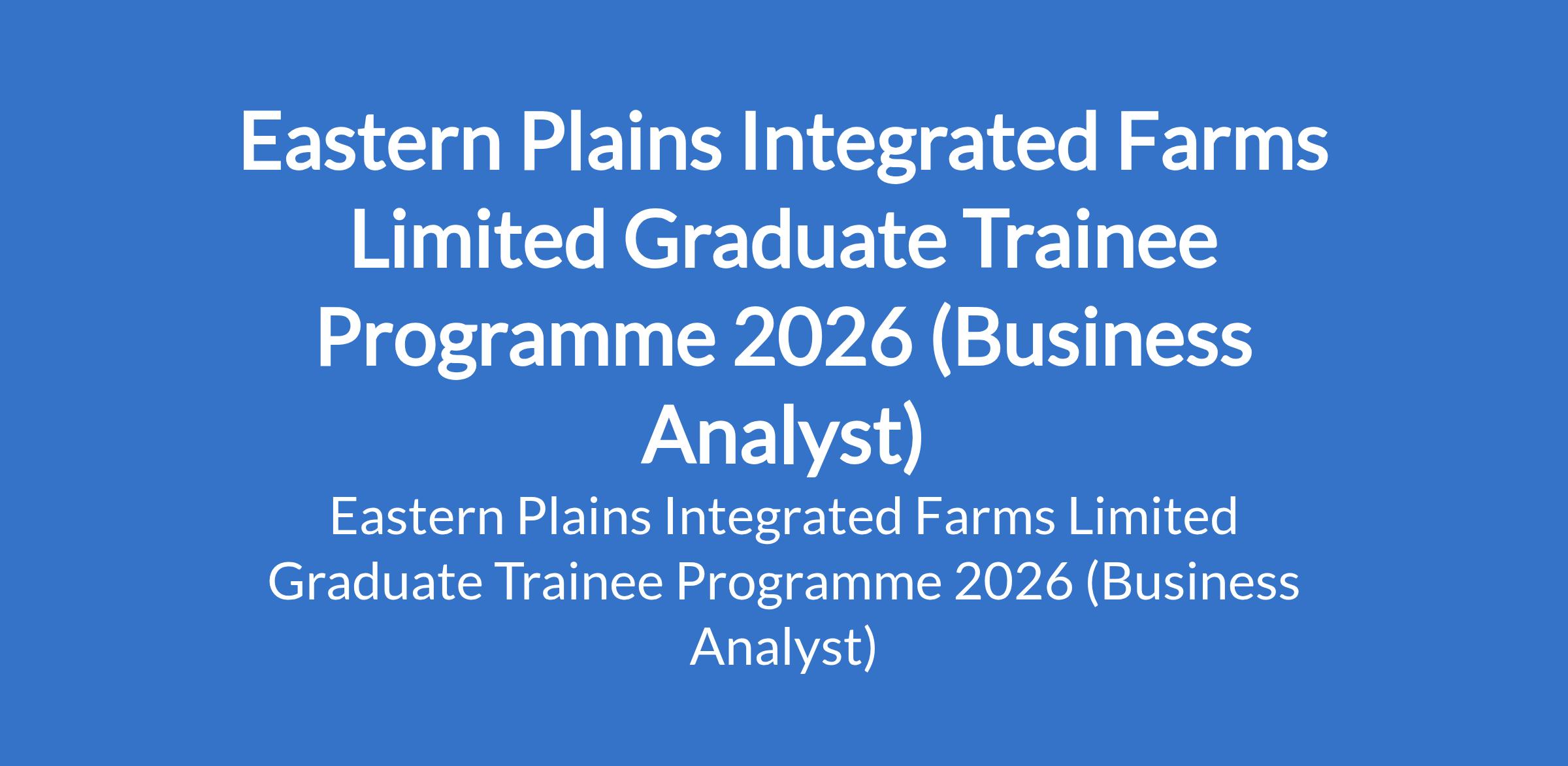 Eastern Plains Integrated Farms Limited invites applications from suitable candidates for its 2026 Graduate Trainee Programme (Business Analyst). The position is located in Anambra State. Interested candidates should possess a B.Sc / HND in relevant fields including Agriculture, Sciences, Engineering, Finance, Business with 0 - 4 years post-NYSC experience.