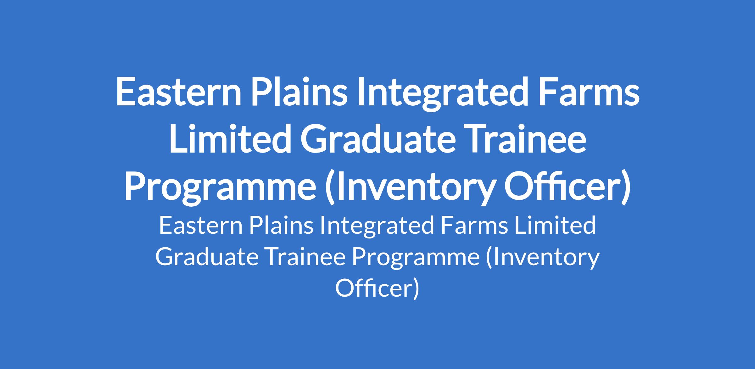 Eastern Plains Integrated Farms Limited invites applications from suitable candidates for its Graduate Trainee Programme (Inventory Officer). The position is located in Anambra State. Interested candidates should possess a B.Sc / HND in relevant fields including Agriculture, Sciences, Engineering, Finance, Business with 0 - 4 years post-NYSC experience.