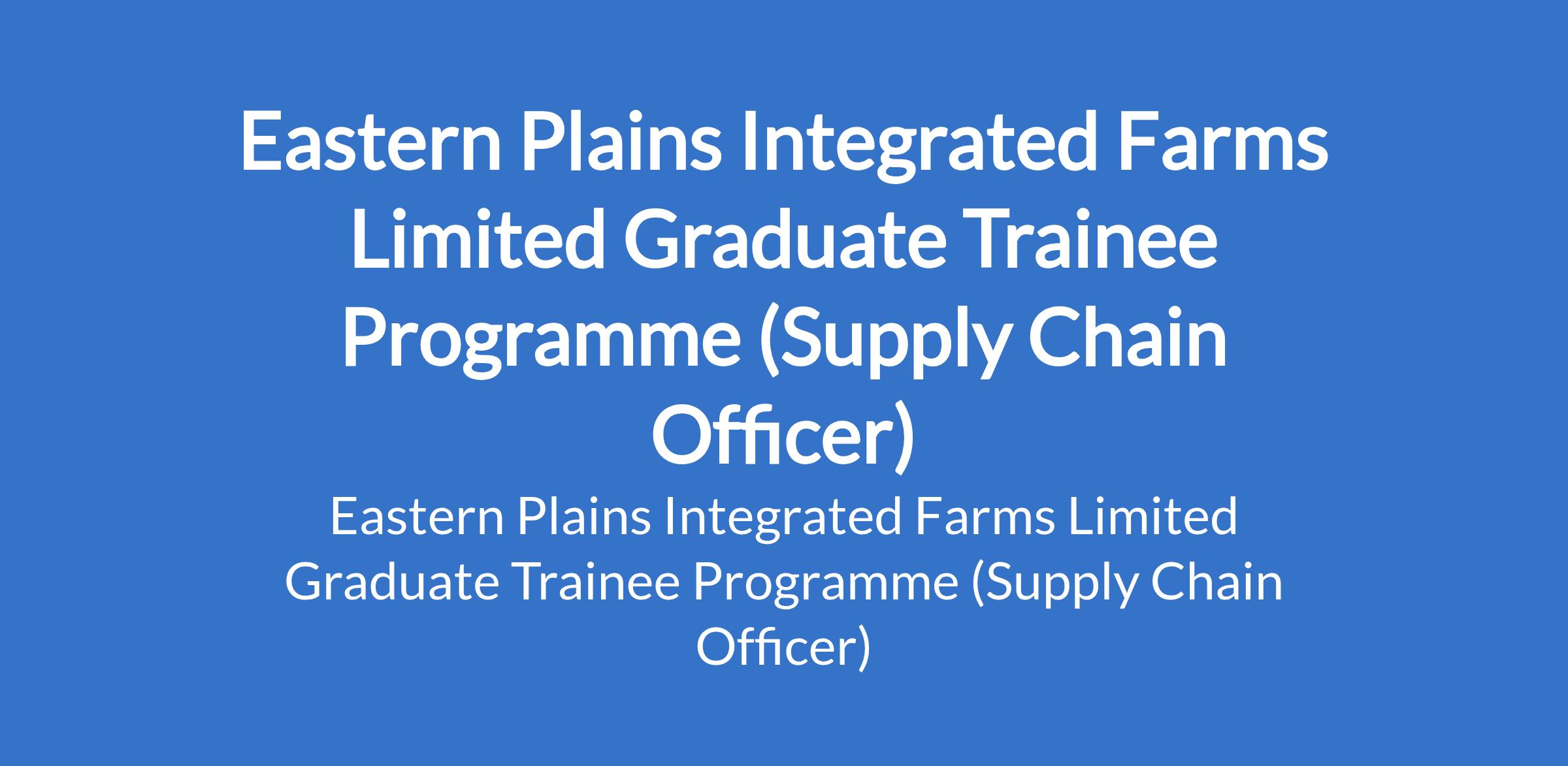 Eastern Plains Integrated Farms Limited invites applications from suitable candidates for its Graduate Trainee Programme (Supply Chain Officer). The position is located in Anambra State. Interested candidates should possess a B.Sc / HND in relevant fields including Agriculture, Sciences, Engineering, Finance, Business with 0 - 4 years post-NYSC experience.