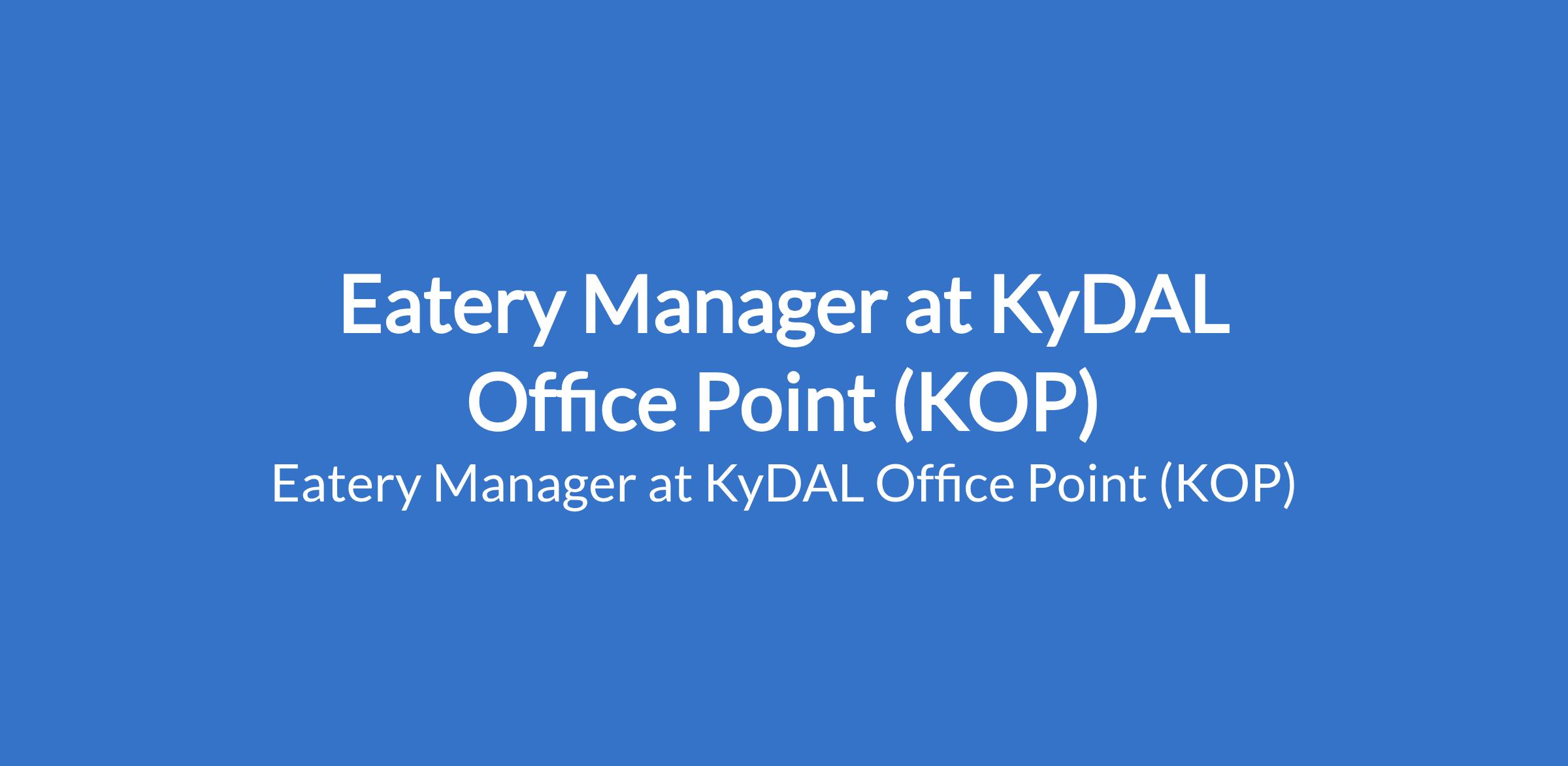 KyDAL Office Point (KOP) is recruiting to fill the position of: Eatery Manager. The position is located in Ibadan, Oyo State. Salary: N150,000 - N200,000 monthly. Interested candidates should possess relevant qualifications with 1 - 4 years experience.
