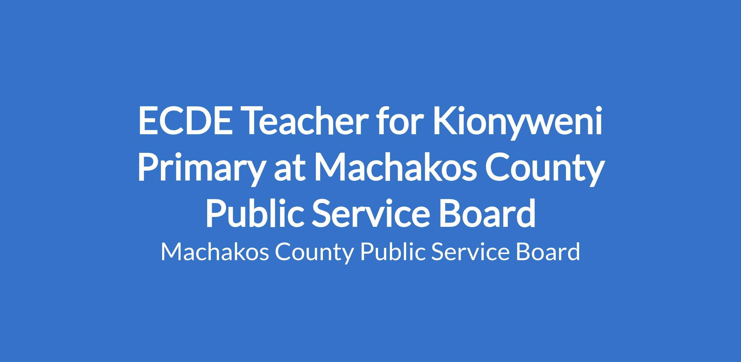 ECDE Teacher for Kionyweni Primary at Machakos County Public Service Board