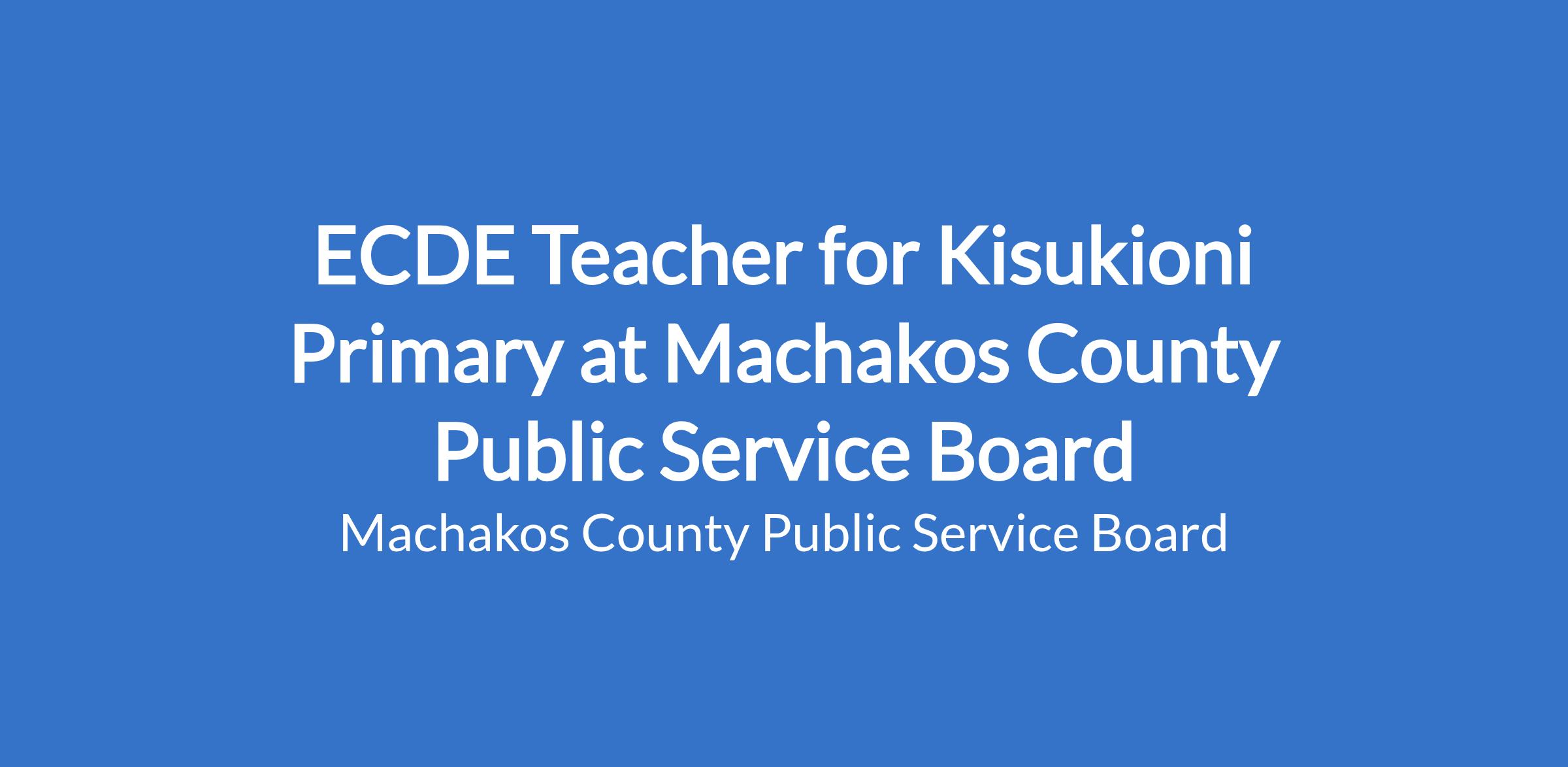 ECDE Teacher for Kisukioni Primary at Machakos County Public Service Board