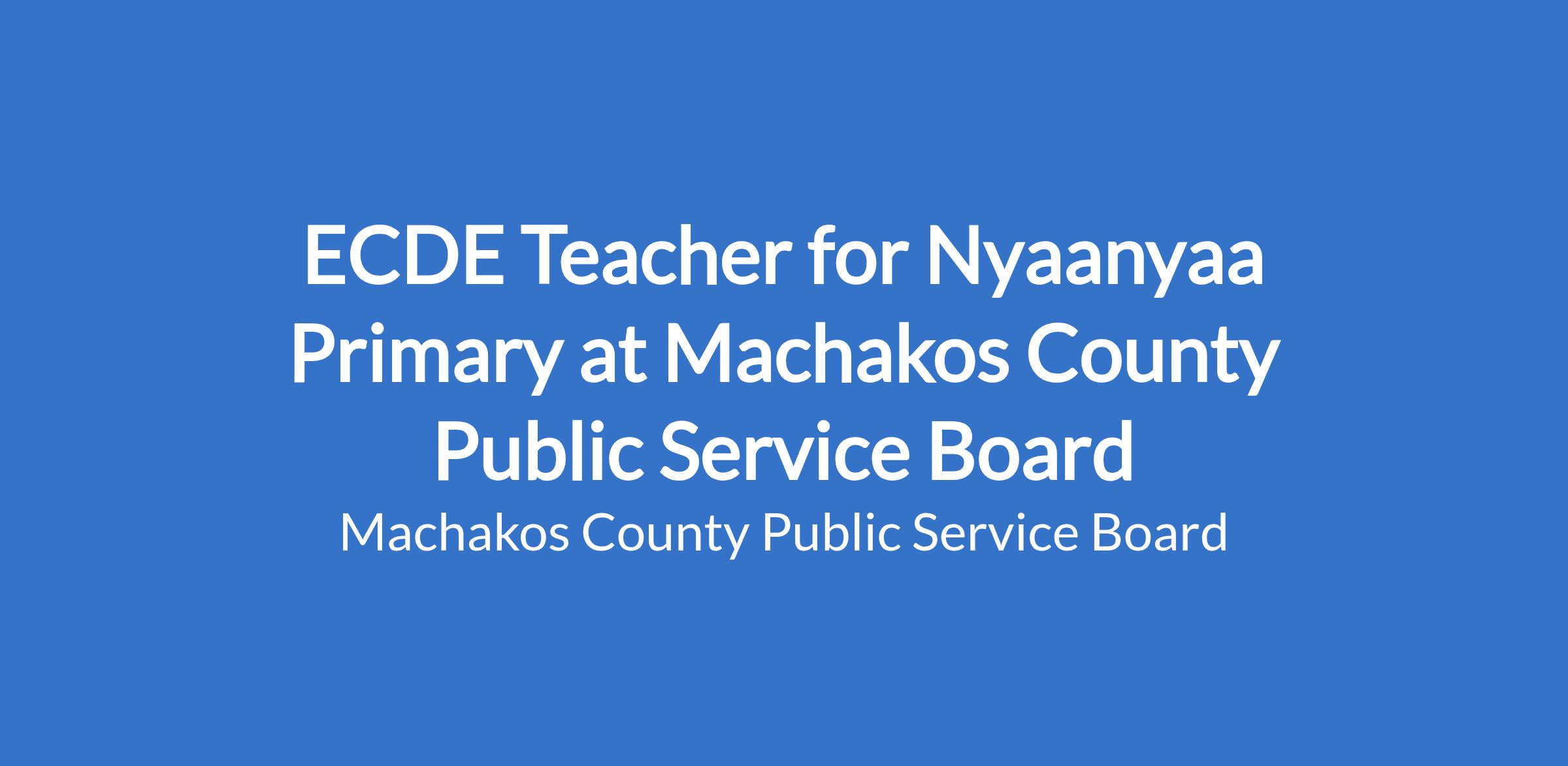 ECDE Teacher for Nyaanyaa Primary at Machakos County Public Service Board