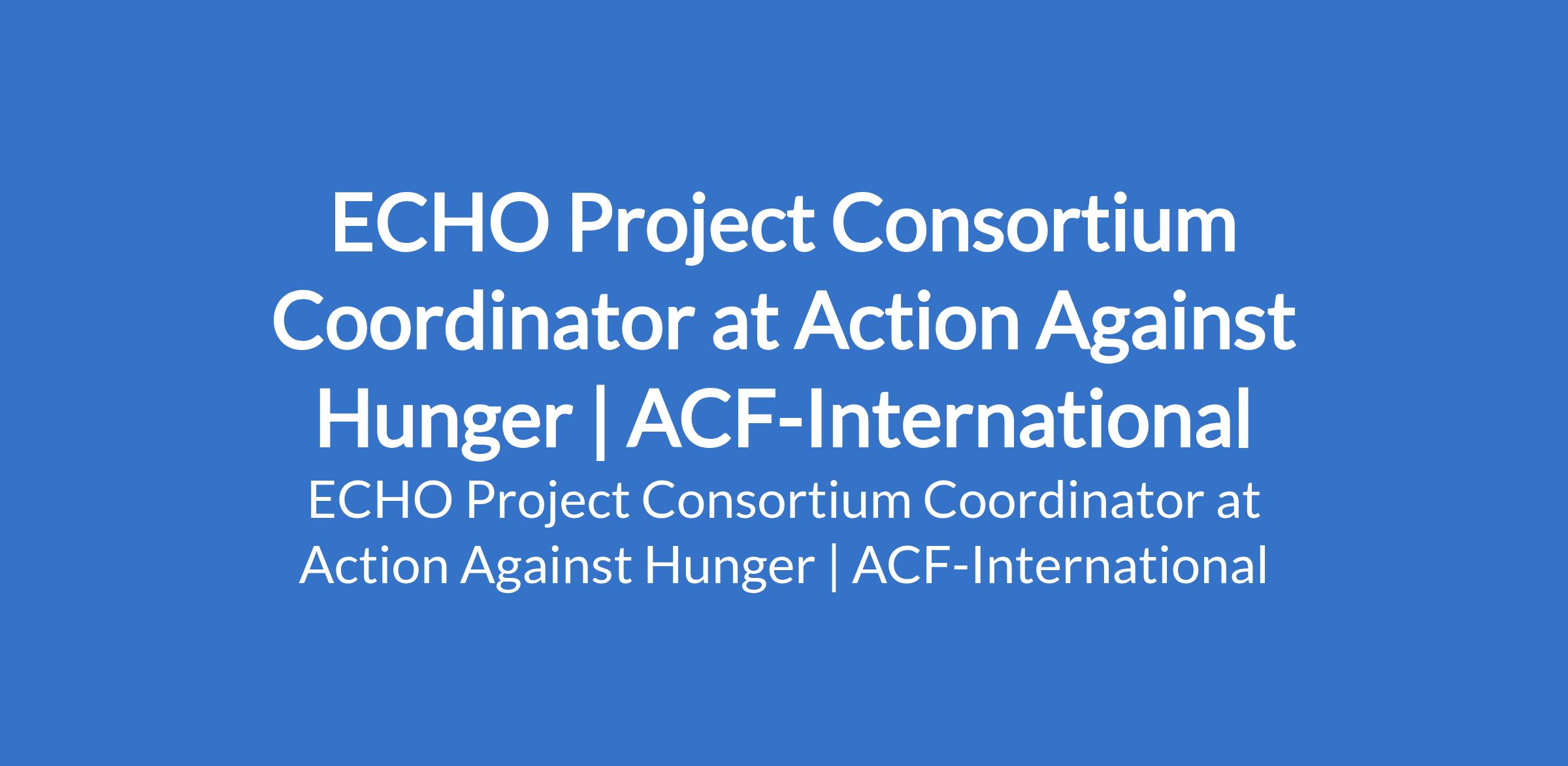 Action Against Hunger | ACF-International is recruiting to fill the position of: ECHO Project Consortium Coordinator. The position is located in Sokoto State. Interested candidates should possess a Bachelors Degree in Project Management, Advocacy, Humanitarian Studies, International Relations, Political Science, or related field; a Masters Degree preferred with a minimum of 5 years of experience coordinating humanitarian or development programmes in complex and dynamic environments.