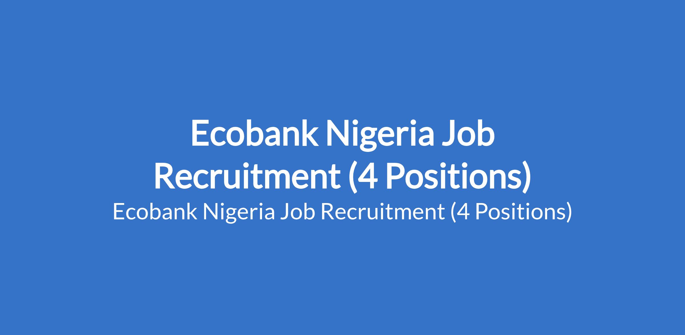 Ecobank Nigeria is recruiting suitably qualified candidates to fill the following positions in Lagos State: Software Developer, Senior Sales Officer - Retail, EDCFM, Team Lead, General Fraud Investigation, and Team Member, General Fraud Investigation.