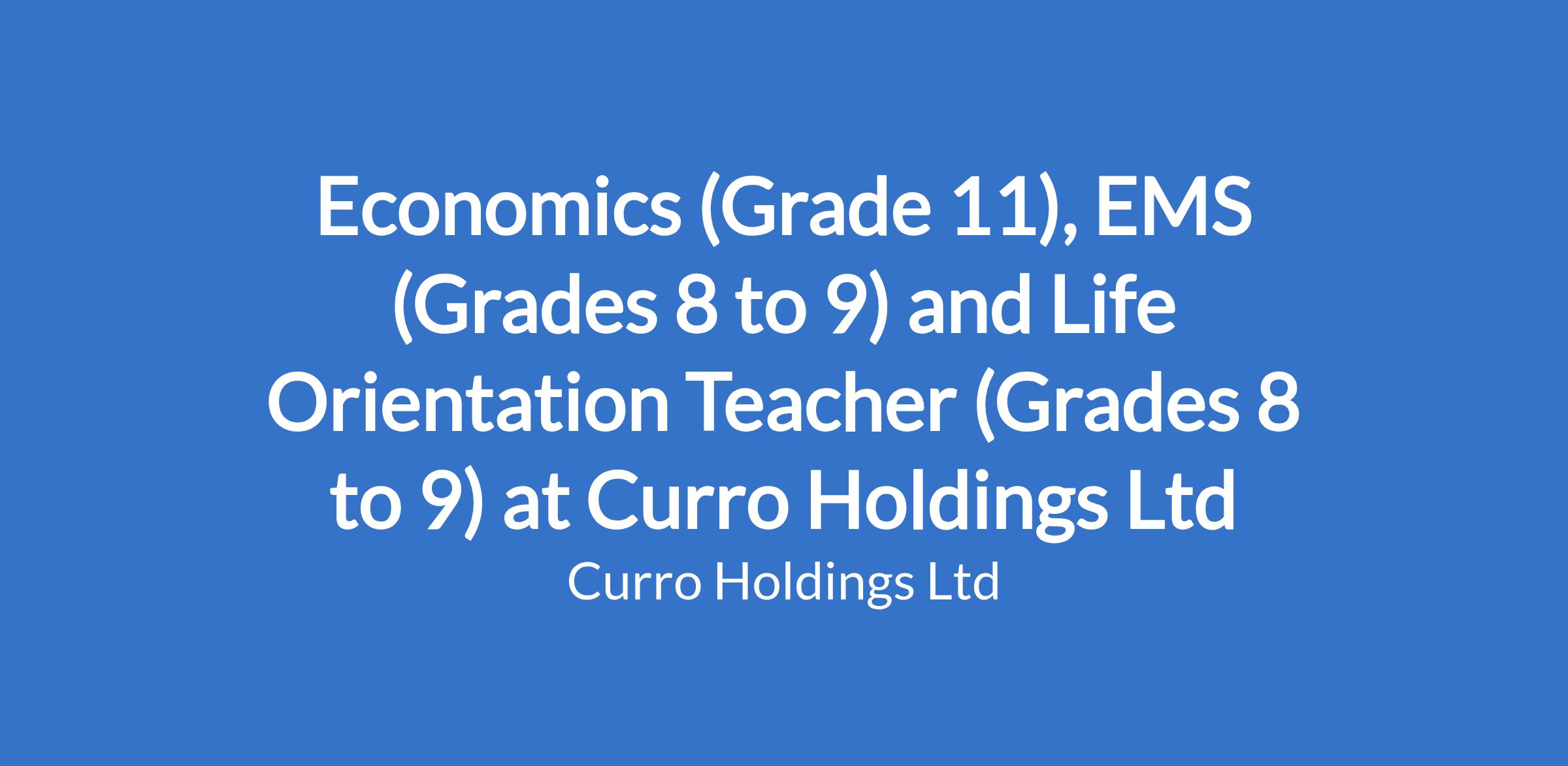Economics (Grade 11), EMS (Grades 8 to 9) and Life Orientation Teacher (Grades 8 to 9) at Curro Holdings Ltd