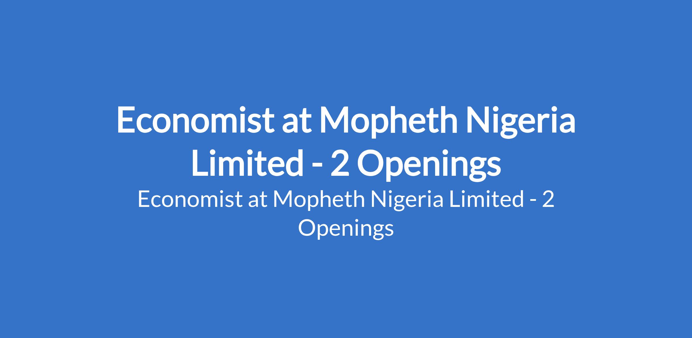 Economist at Mopheth Nigeria Limited - 2 Openings