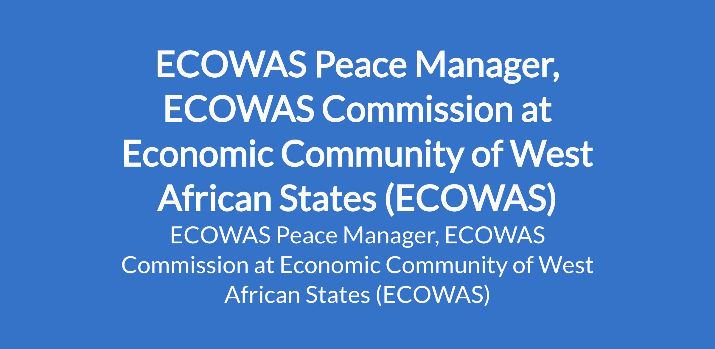 Economic Community of West African States (ECOWAS) is recruiting to fill the position of: ECOWAS Peace Manager, ECOWAS Commission. The position is located in Abuja. Salary: USD 104,330.42 annually. Interested candidates should possess a Masters Degree in Political Science, International Relations, Peace and Security Studies, Administration, Finance or any related discipline, obtained at a recognized university with 10 years of experience.
