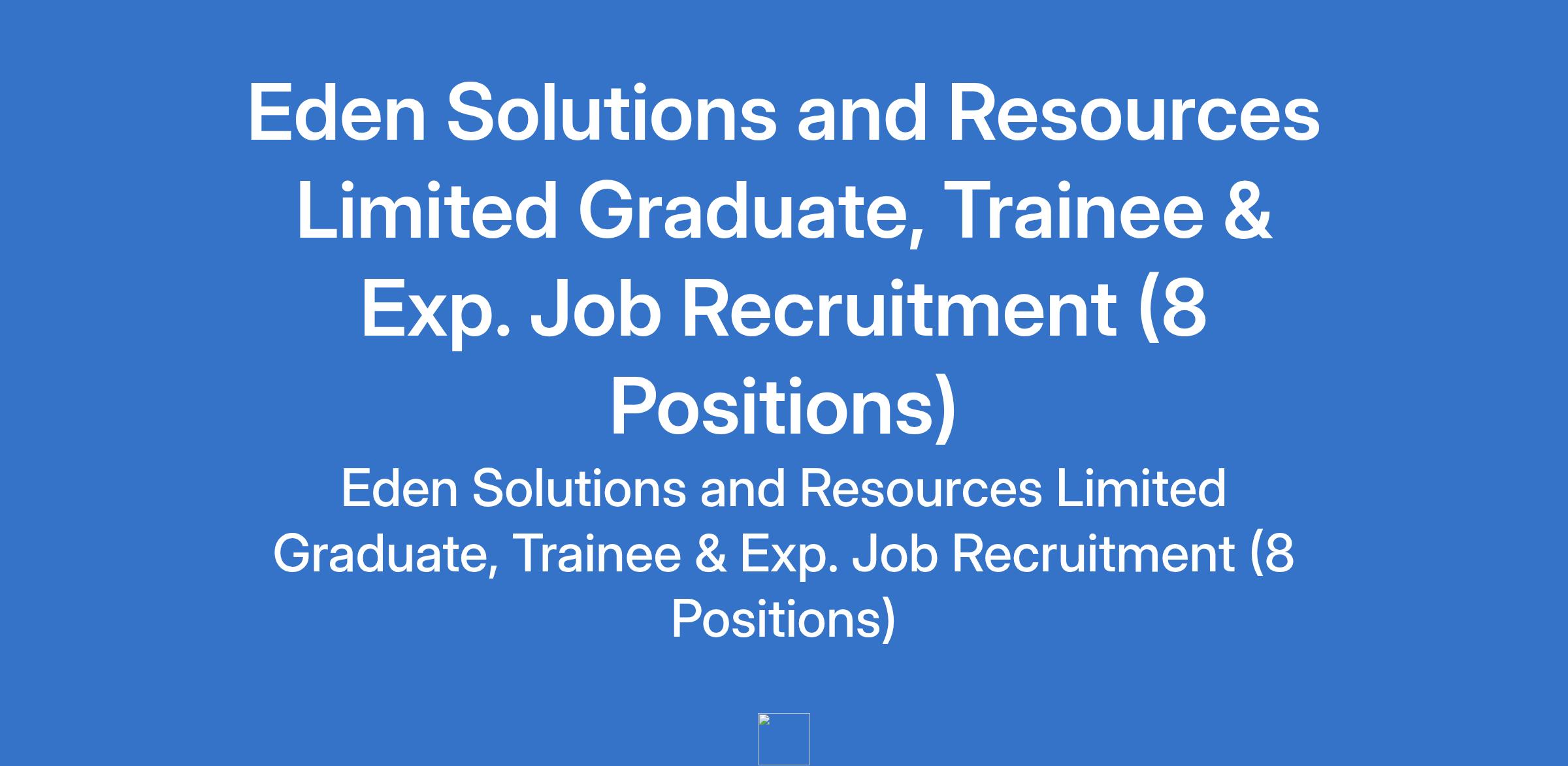 Eden Solutions and Resources Limited is recruiting suitably qualified candidates to fill the following internship, trainee and experienced positions in Abuja (FCT): Legal Officer, Graduate Trainee - Accounting Track, Trainee HR, IT Officer, Business Manager,Property Manager, Front Desk Officer, and Teacher.