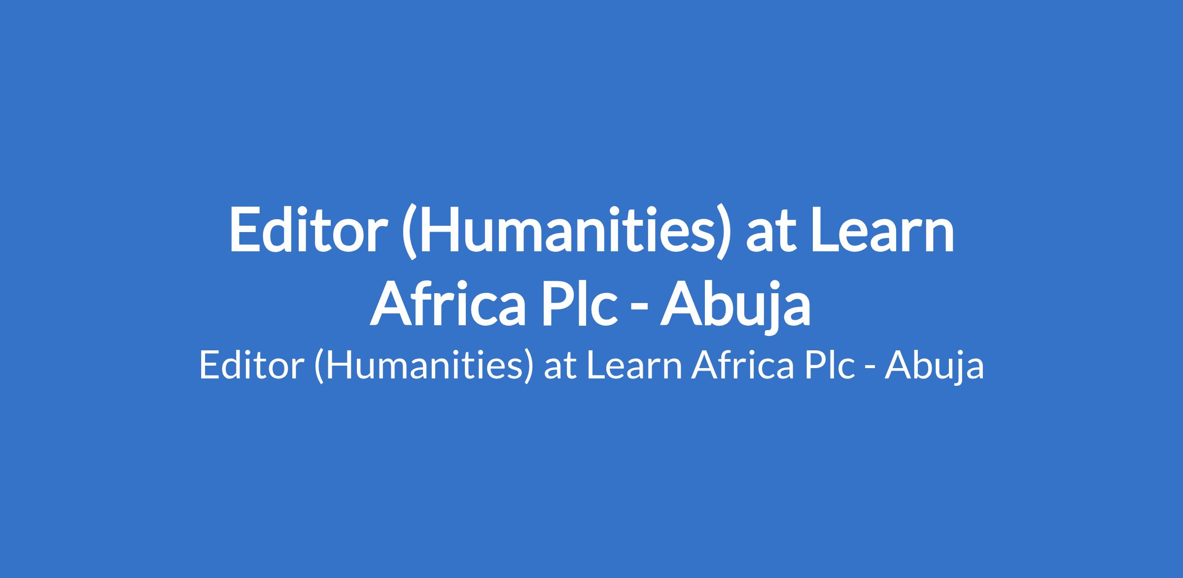 Editor (Humanities) at Learn Africa Plc - Abuja
