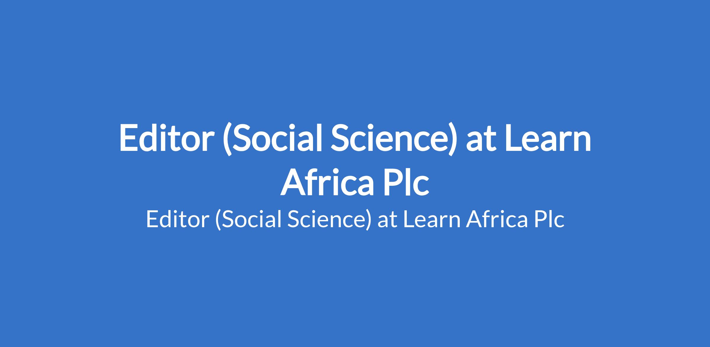 Learn Africa Plc is recruiting to fill the position of: Editor (Social Science). The position is located in Lagos State. Interested candidates should possess a BSc in Sociology, Economics, or Political Science with a minimum of 2 years editing experience.