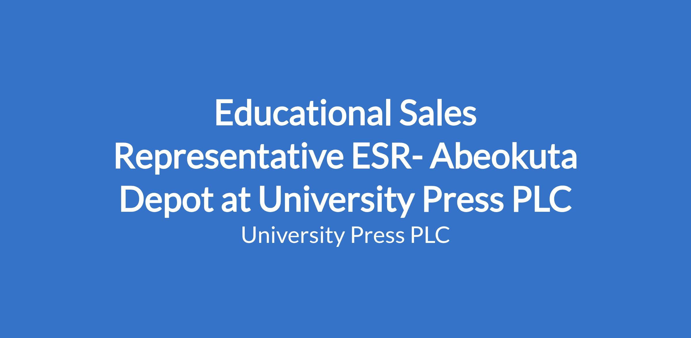 Educational Sales Representative ESR- Abeokuta Depot at University Press PLC