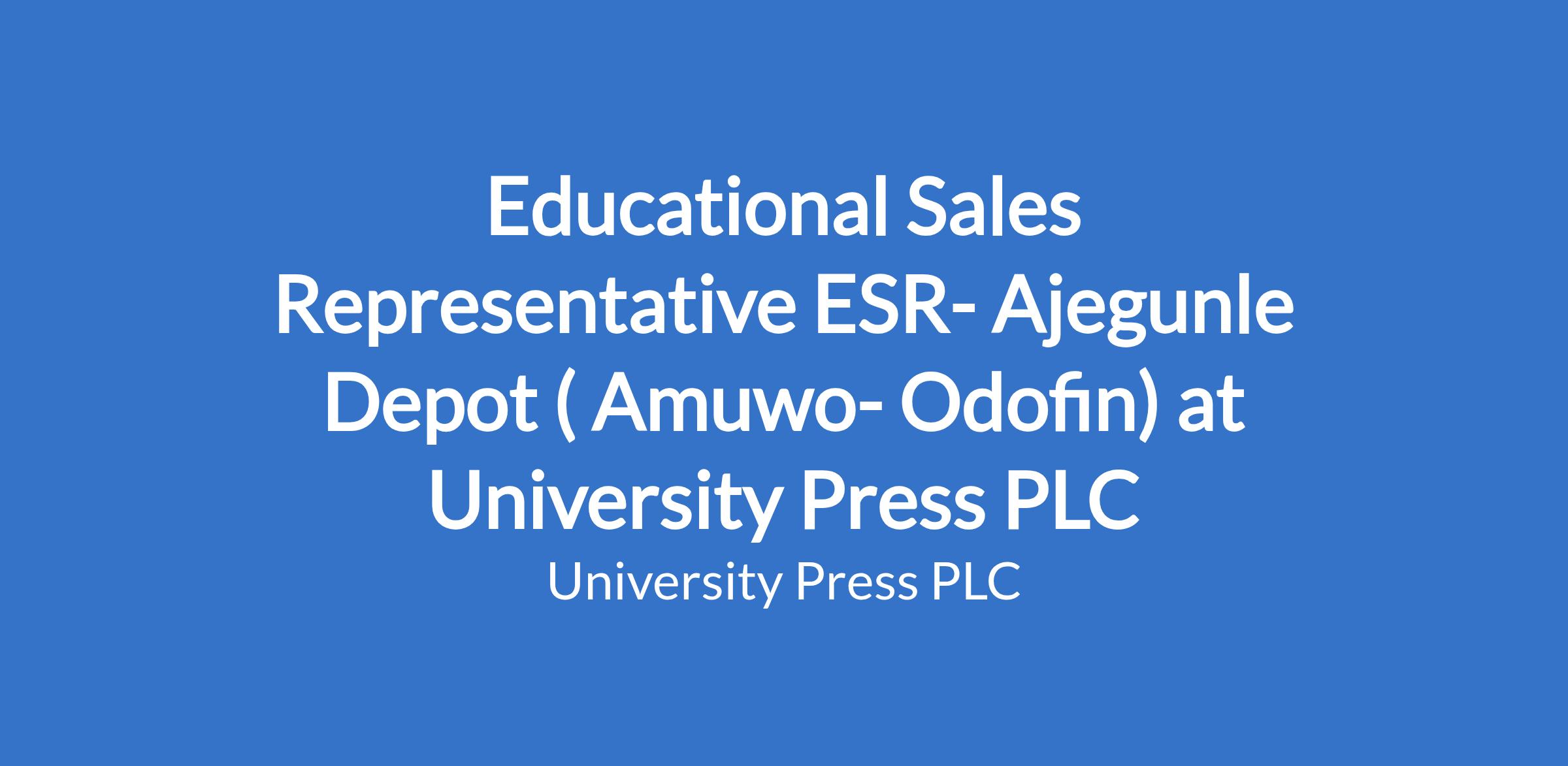 Educational Sales Representative ESR- Ajegunle Depot ( Amuwo- Odofin) at University Press PLC