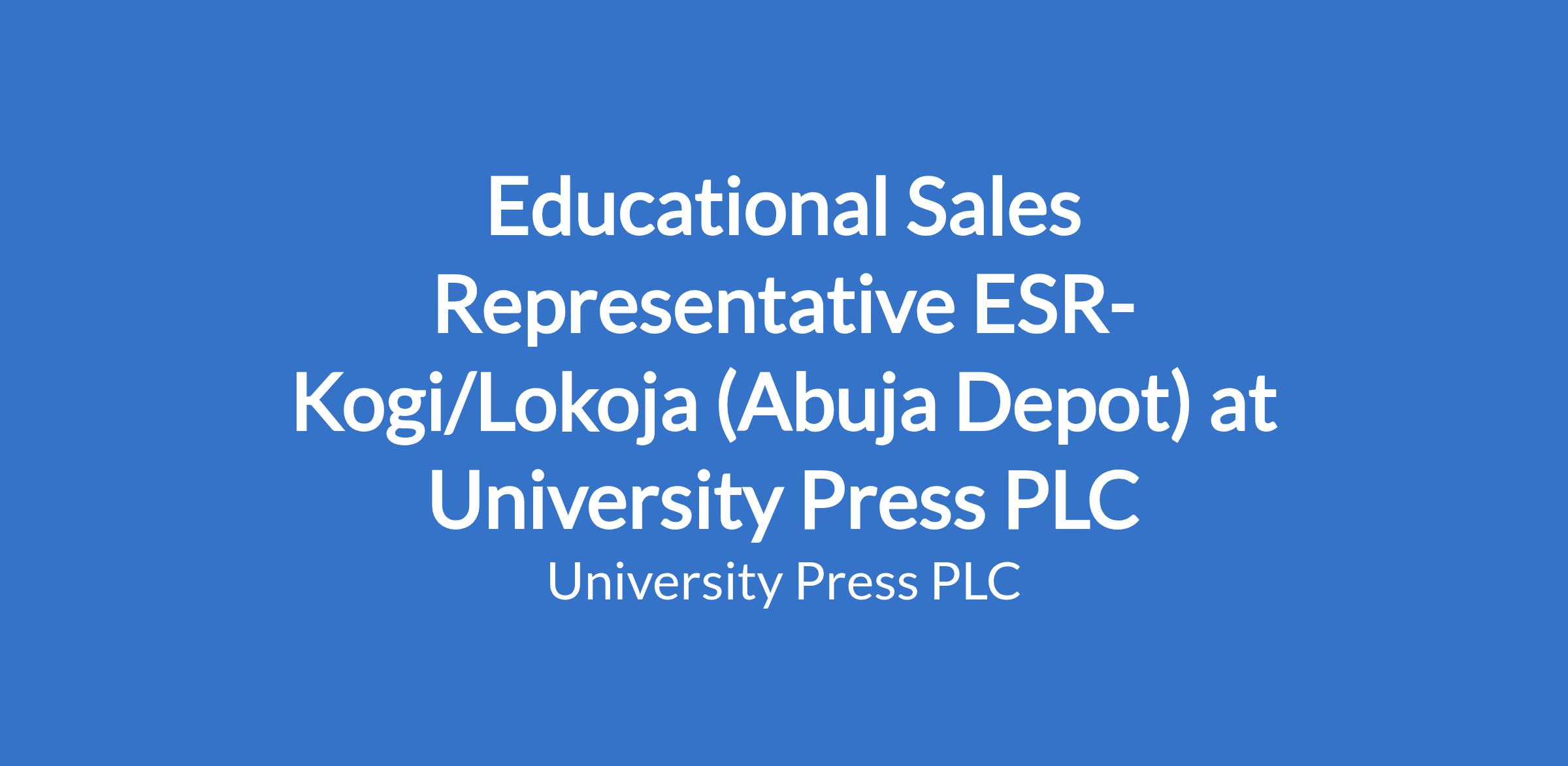 Educational Sales Representative ESR- Kogi/Lokoja (Abuja Depot) at University Press PLC