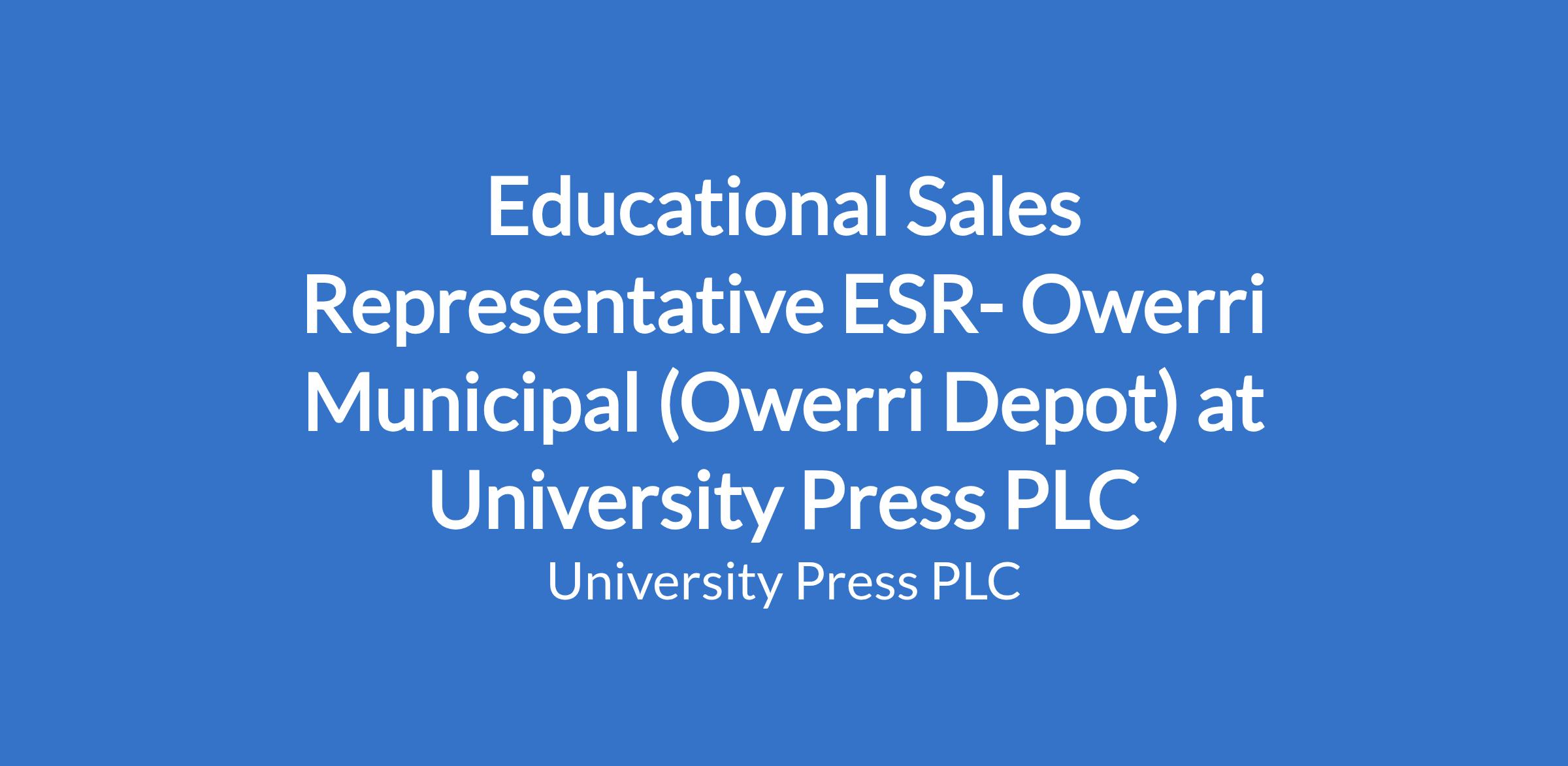 Educational Sales Representative ESR- Owerri Municipal (Owerri Depot) at University Press PLC