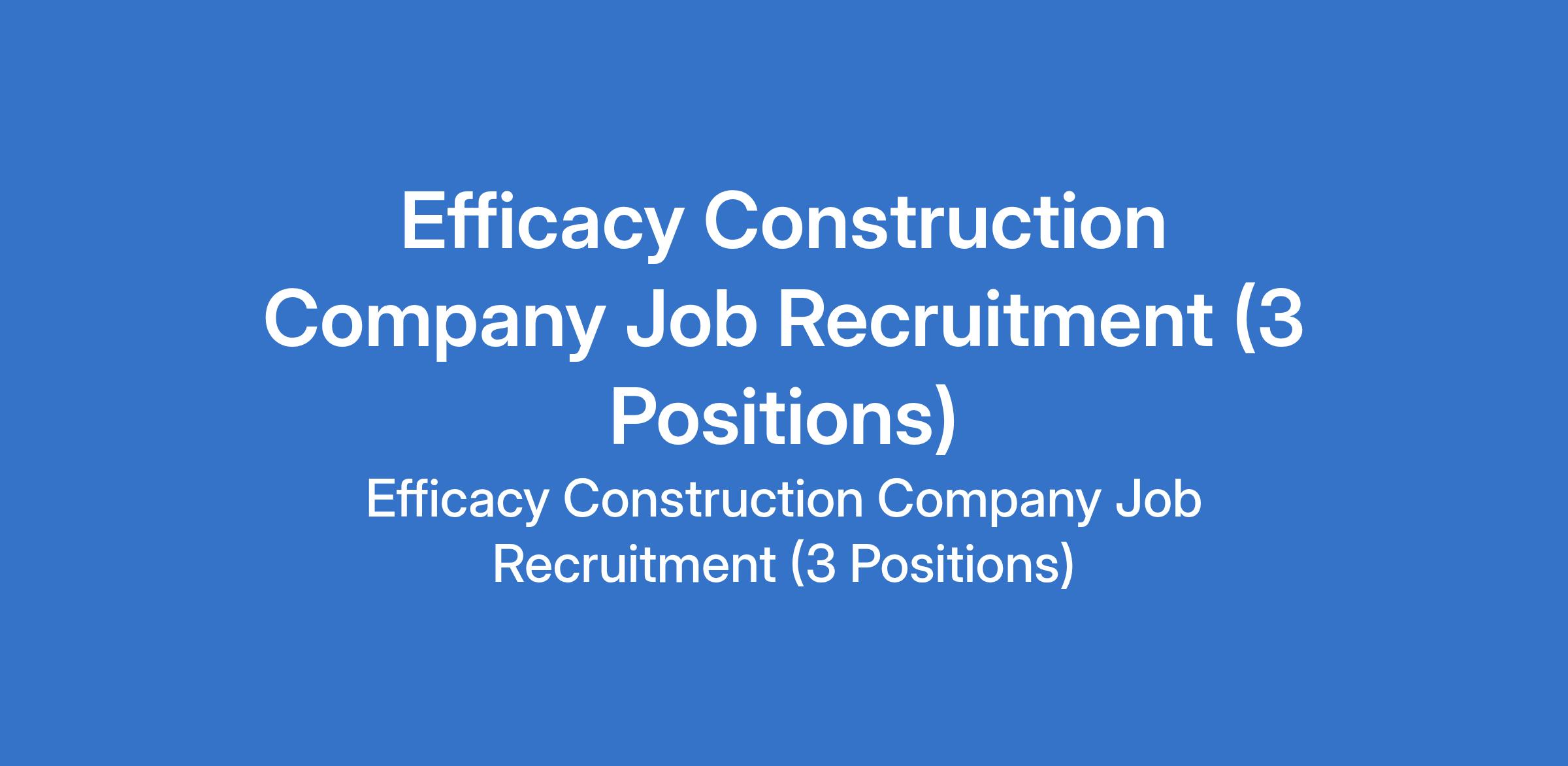 Efficacy Construction Company Job Recruitment (3 Positions)