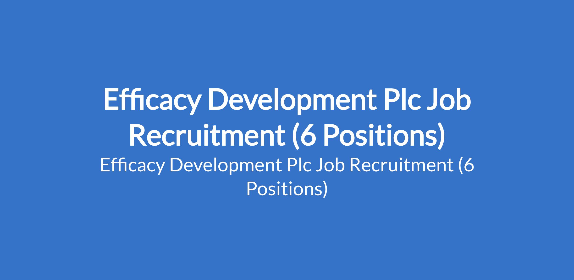 Efficacy Development Plc Job Recruitment (6 Positions)