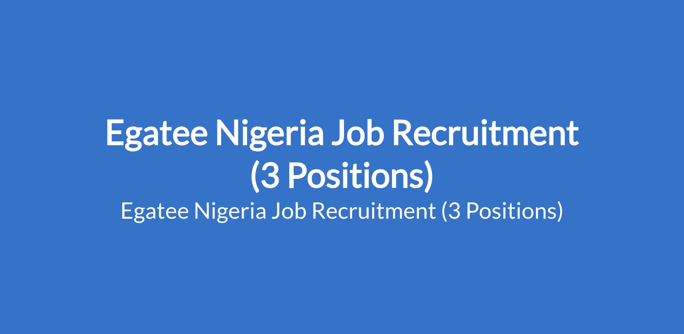 Egatee Nigeria Job Recruitment (3 Positions)