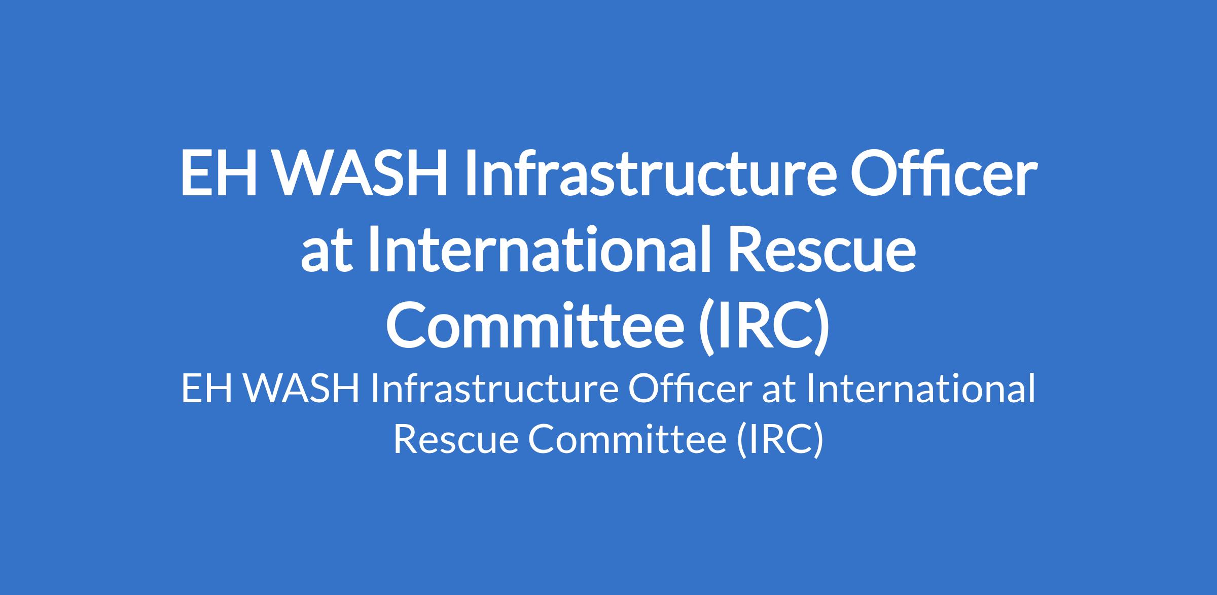 The International Rescue Committee (IRC) is recruiting to fill the position of: EH WASH Infrastructure Officer. The position is located in Monguno, Borno State. Interested candidates should possess a B.Sc. / High National Diploma in Civil, Water Resources, Building or Mechanical Engineering, Hydrogeology with hand on experience in developing and adopting emergency WASH technologies and designs experience in implementation of water and sanitation projects, and 2 - 4 years professional experience with NGOs (INGO experience preferred).