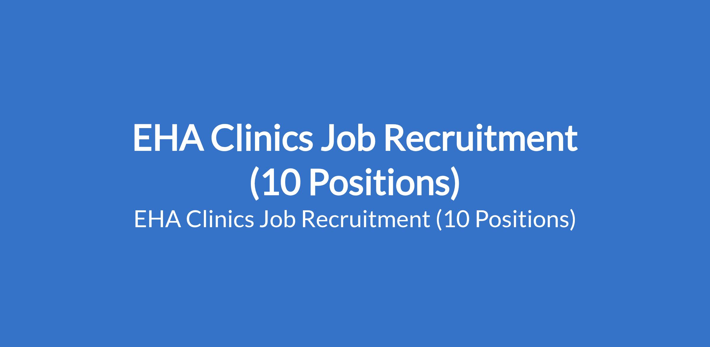 EHA Clinics is recruiting suitable candidates to fill the following positions in Abuja, Lagos and Kano States: Operations Assistant; Registered Nurse; Practice & Quality Assurance Coordinator, Senior Officer, Client Engagement; Laboratory Co-ordinator; Medical Doctor; Pharmacist; Practice & Quality Assurance Coordinator (REACH); and Medical Laboratory Technician.