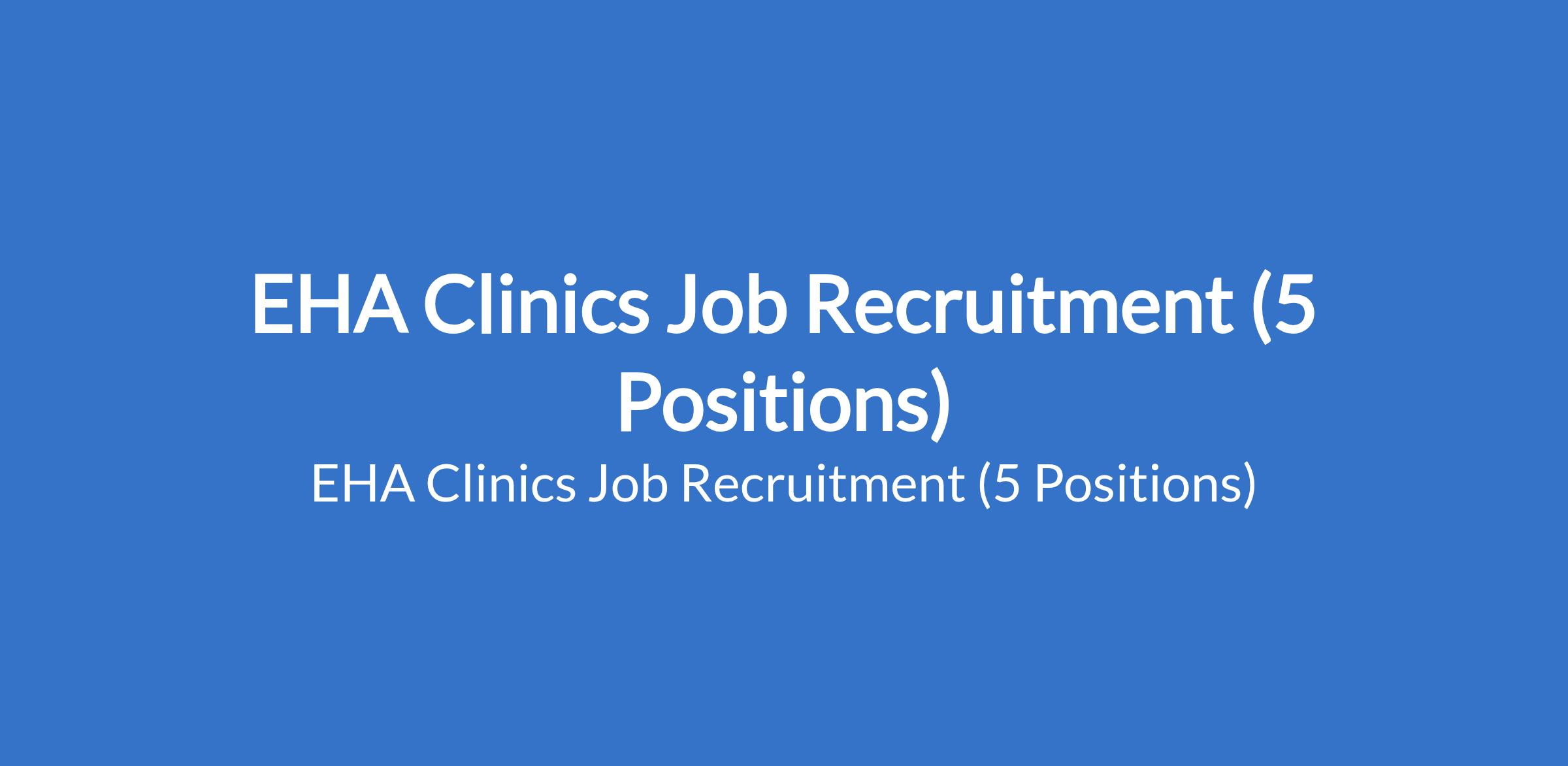 EHA Clinics Job Recruitment (5 Positions)