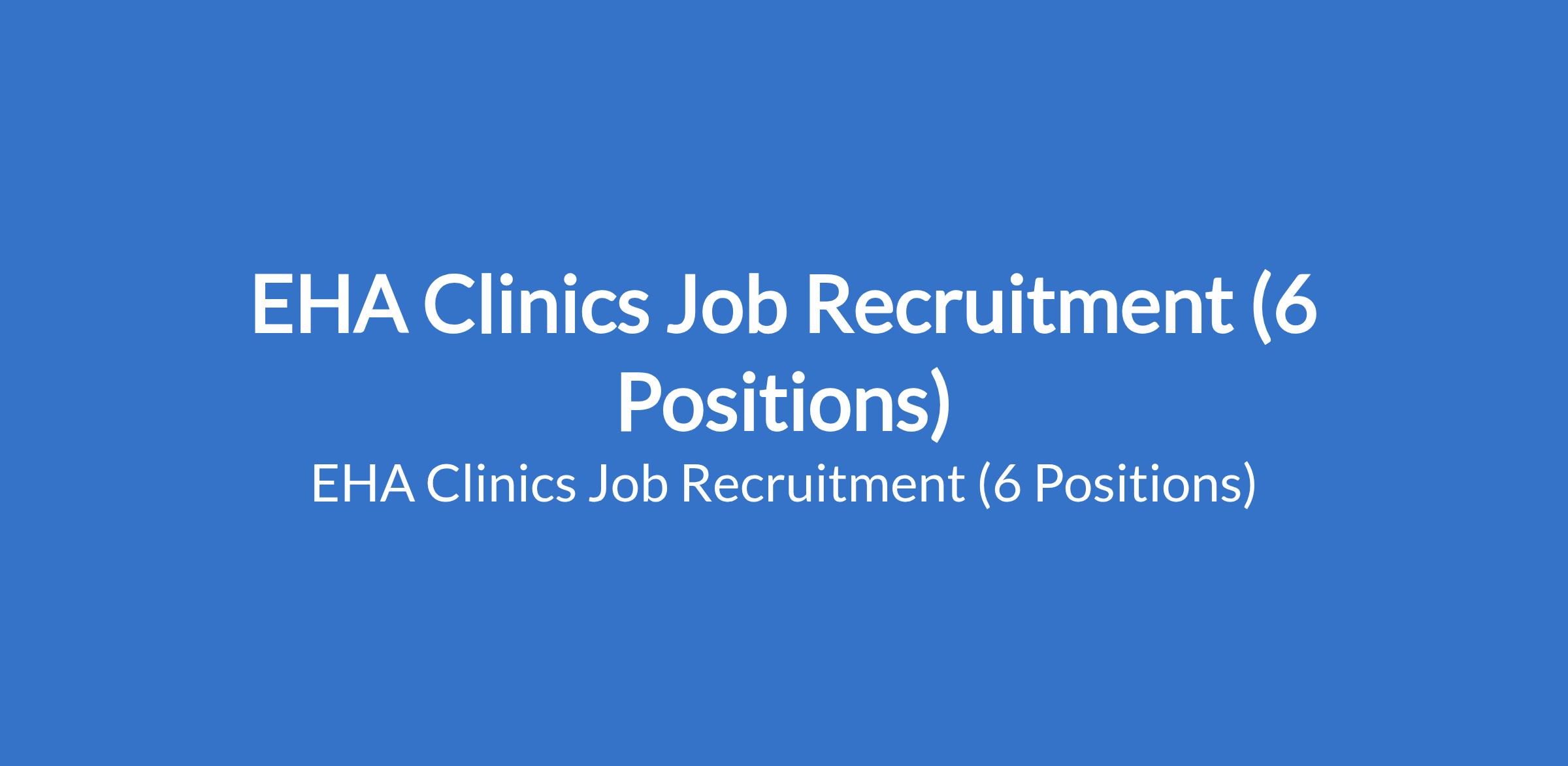 EHA Clinics is recruiting suitable candidates to fill the following positions in Abuja, Lagos and Kano States: Medical Laboratory Technician, Operations Assistant, Talent Acquisition Officer, Practice & Quality Assurance Coordinator (REACH), and Pharmacist.