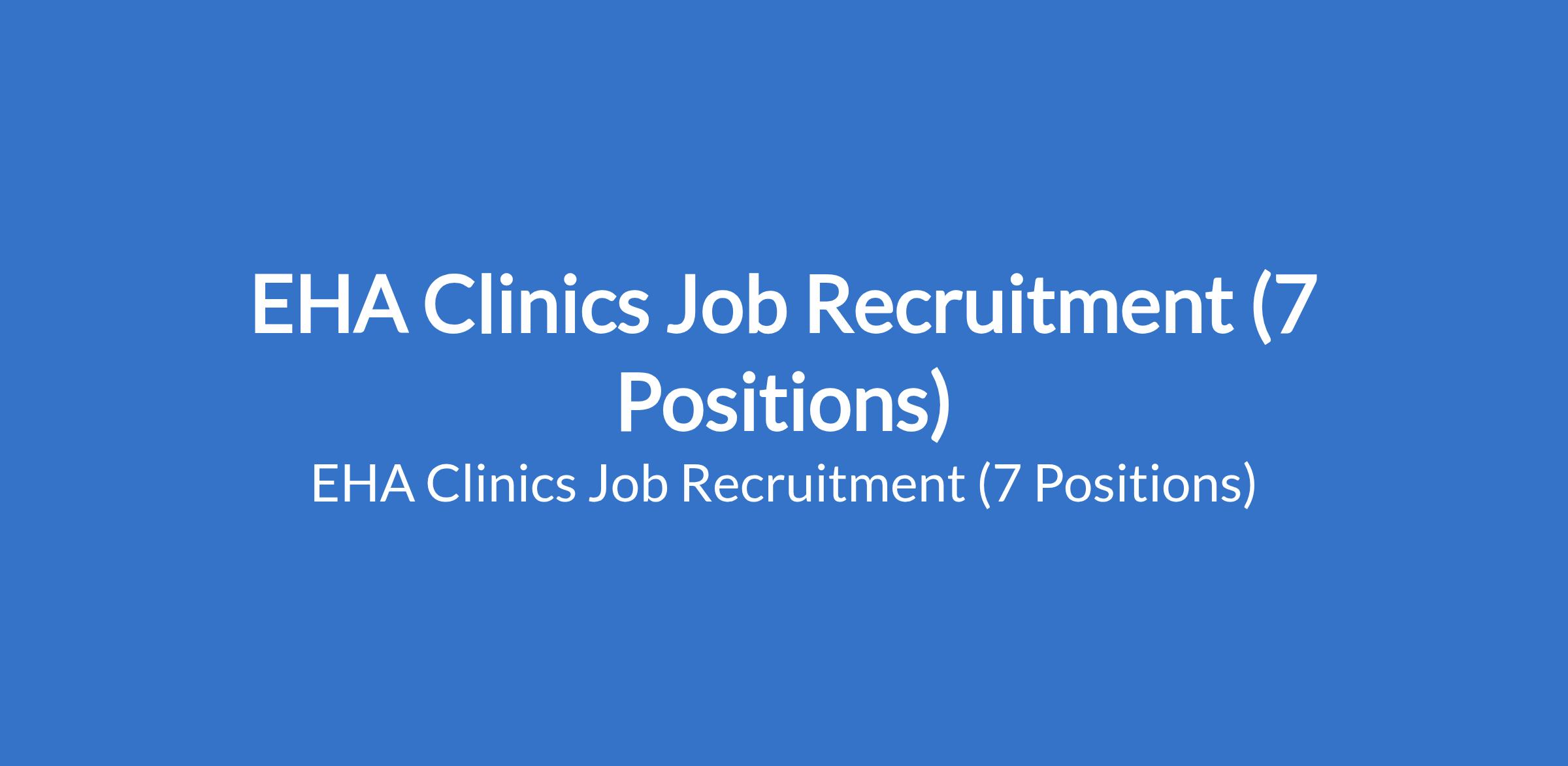 EHA Clinics is recruiting suitable candidates to fill the following positions in Abuja, Lagos and Kano States: Senior Officer, Client Engagement; Laboratory Co-ordinator; Medical Doctor; Pharmacist; Practice & Quality Assurance Coordinator (REACH); and Medical Laboratory Technician.