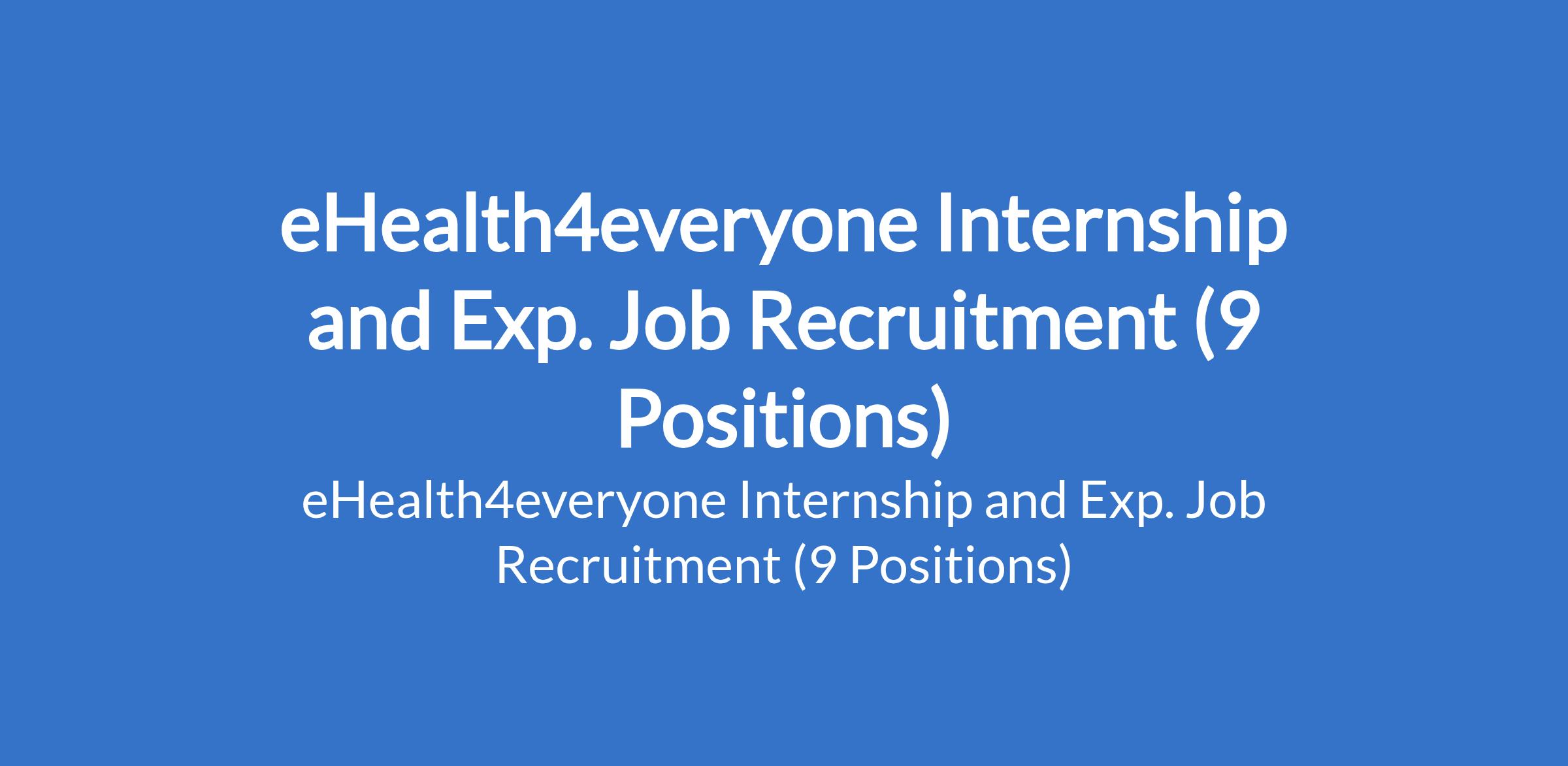 eHealth4everyone is recruiting suitably qualified candidates to fill the following Internship and experienced positions in Abuja (FCT): Software Project Management Assistant, Site Building Support Intern (NYSC), Digital Engagement Intern (NYSC), Admin and Operations Officer, DevOps Intern (NYSC / Pre-NYSC), Finance Intern (NYSC), Database Management Assistant, Database Management Intern (NYSC), & IT Support Intern (NYSC/PRE-NYSC).