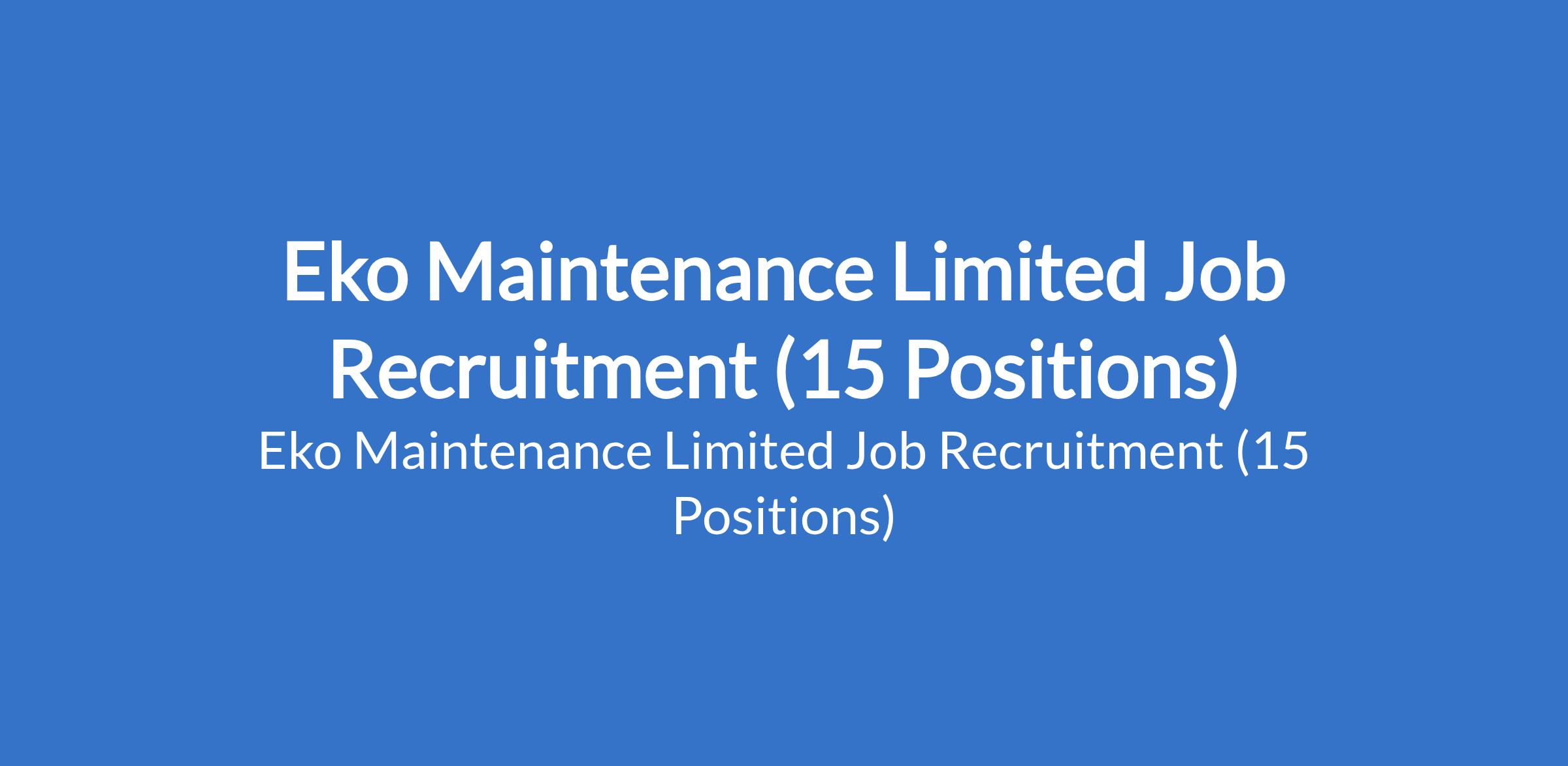 Eko Maintenance Limited is currently recruiting suitable candidates to fill the following positions in Lagos State: Legal Officer, Legal HR Officer, Aluminium (Cladding Facade) Technician, Electric ELV Technician, HVAC Technician, Fire Alarm Technician, HSE Officer, Fire Alarm Technician, Archive Officer, Carpenter, Plumbing Technician, Inventory Officer, Tiler, Carpenter, Fire Alarm Technician, Aluminium Technician (Cladding Facade), HVAC Technician, Architect Engineer, Carpenter, HR / Legal Officer, Legal Officer, Archive Officer, Driver, and Civil Engineer.