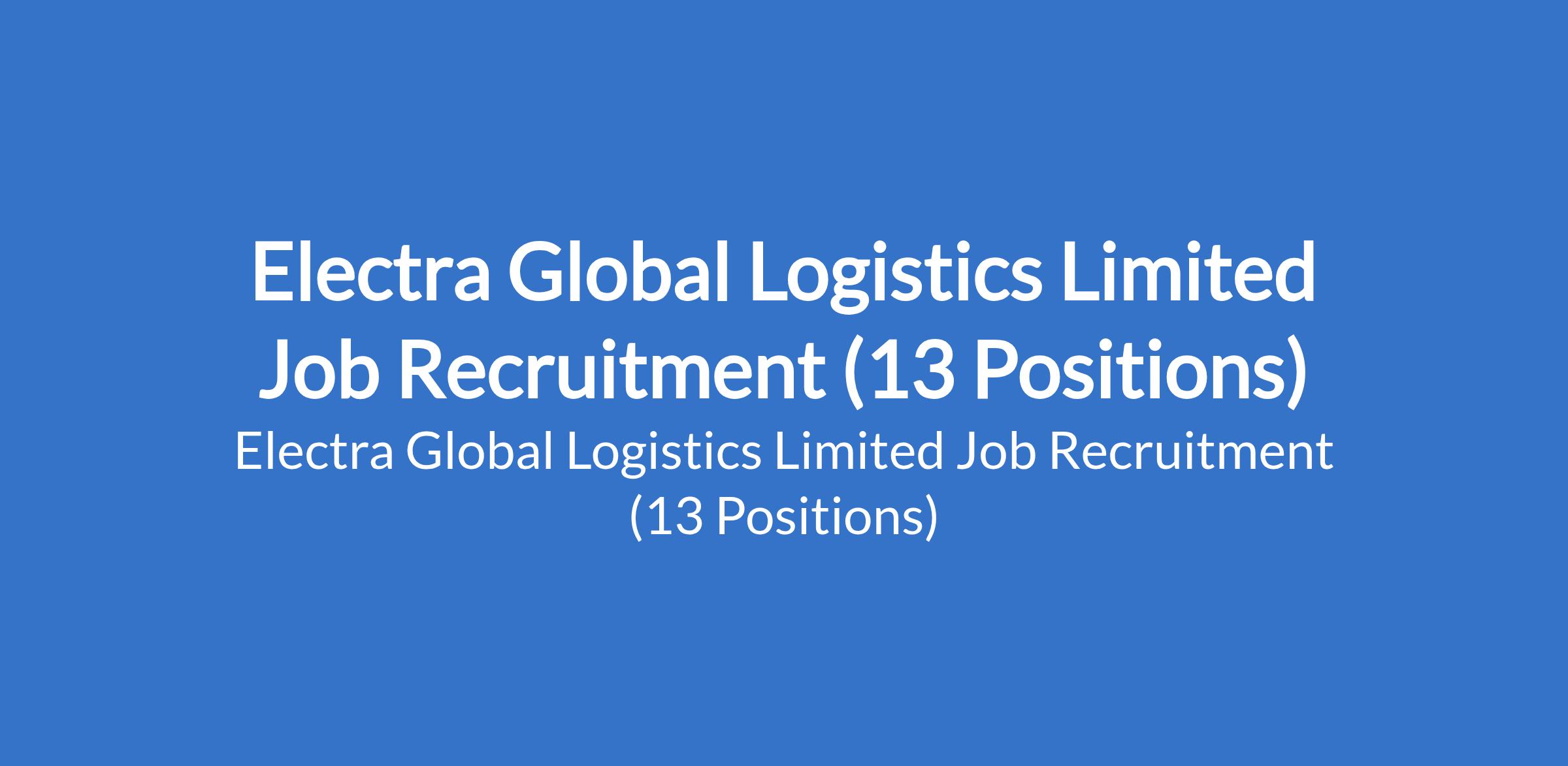 Electra Global Logistics Limited is recruiting to fill the following positions in Lagos State: Public Relations Officer, Sales / Marketing / Customer Service and Public Relations Team Lead, Customer Service Representative, Marketing Officer, Business Development Executive, Executive Assistant to Director, Operations Team Lead, Transport Coordinator, Technical Operations Analyst, Accountant