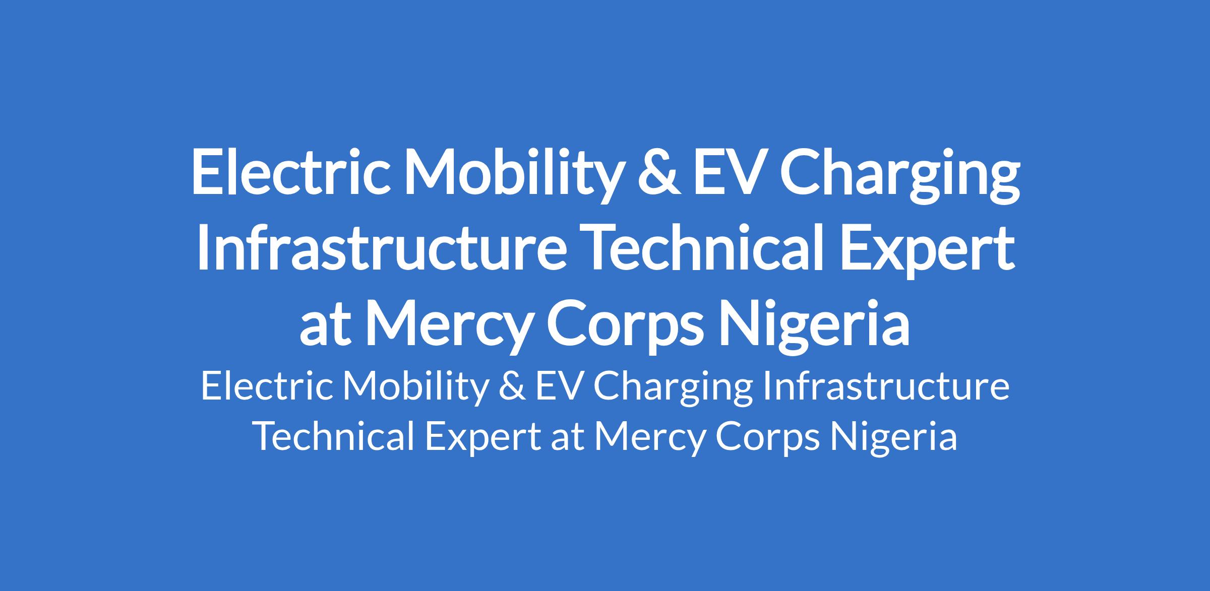 Mercy Corps Nigeria is recruiting to fill the position of: Electric Mobility & EV Charging Infrastructure Technical Expert. Interested candidates should possess a Masters Degree (or equivalent) in Electrical Engineering, Renewable Energy Engineering, Power Systems Engineering, or related field with at least 12 years of experience in the energy sector.