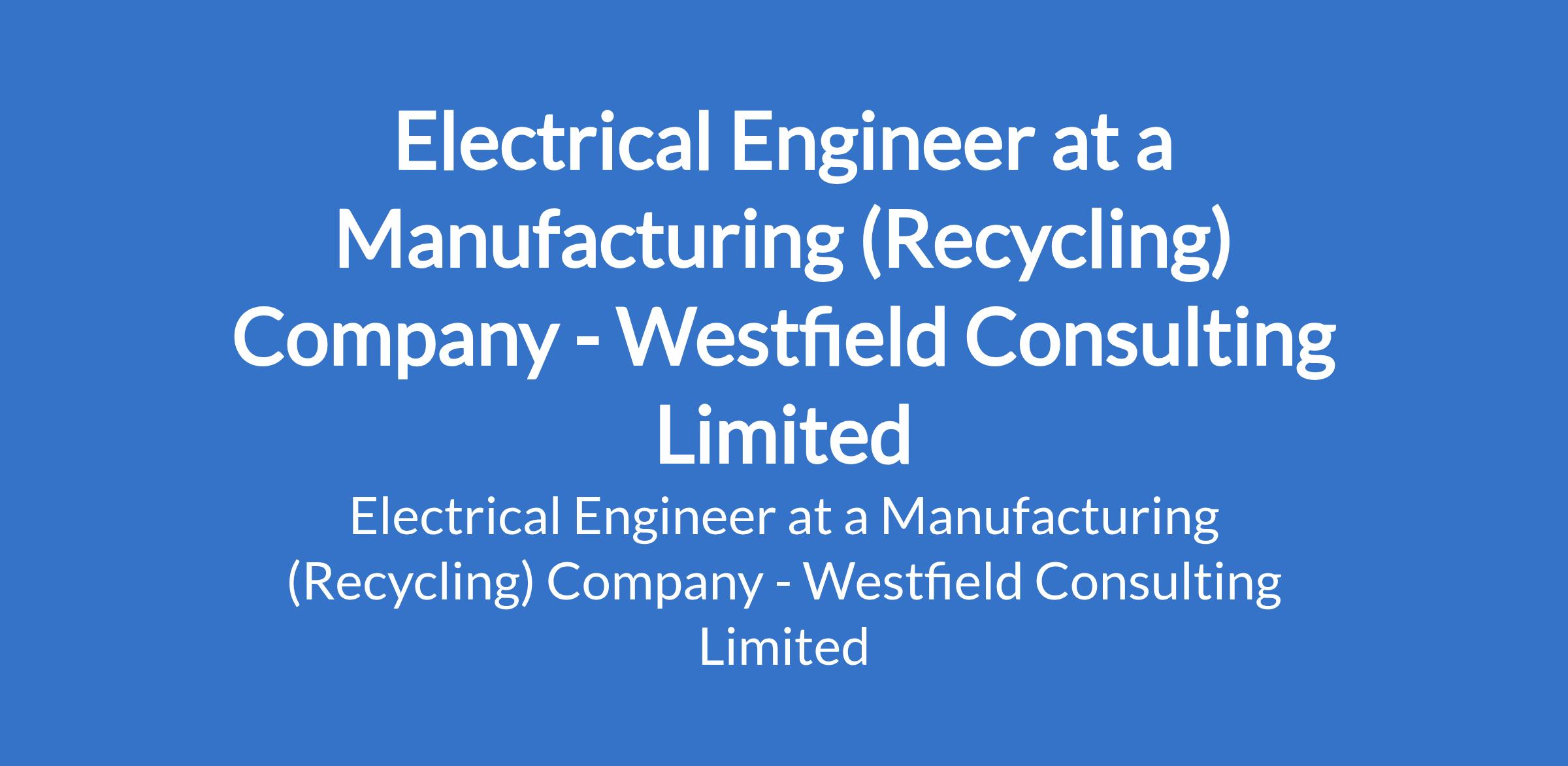 Westfield Consulting Limited - Our client, a manufacturing (recycling) company, is recruiting to fill the position of: Electrical Engineer. The position is located in Mowe, Ogun State. Salary: N154,000 N400,000 per month. Interested candidates should possess a B.Engr. / HND / OND / Trade Test qualification with a minimum of 4 years experience in the Manufacturing Industry.