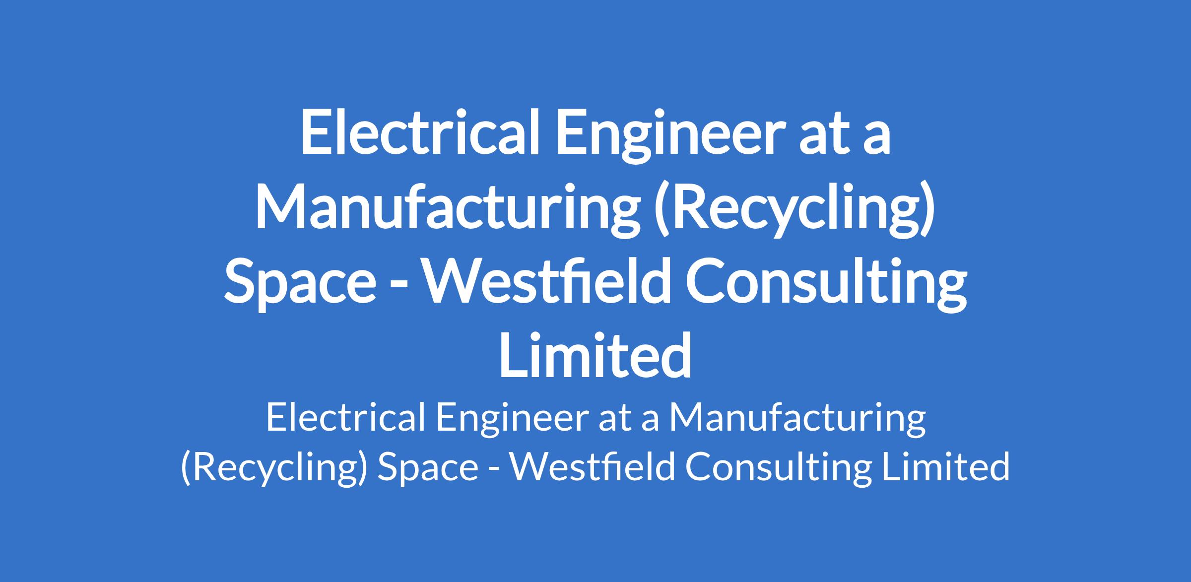 Westfield Consulting Limited - Our client in the Manufacturing (recycling) space is recruiting to fill the position of: Electrical Engineer. The position is located in Mowe, Ogun State. Salary: N154,000 N400,000 per month. Interested candidates should possess a B.Engr. / HND / OND / Trade Test qualification with a minimum of 4 years experience in the Manufacturing Industry.