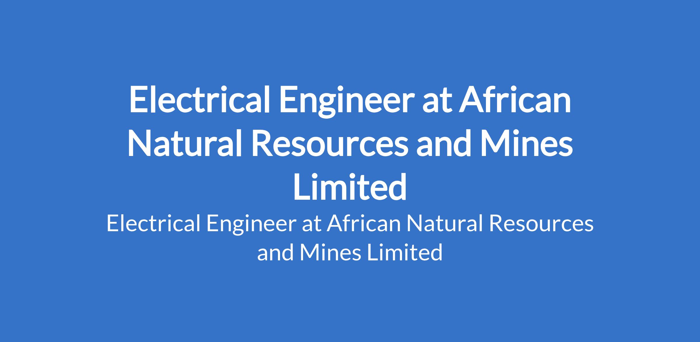 African Natural Resources and Mines Limited (ANRML) is recruiting to fill the position of: Electrical Engineer. The position is located in Gujeni, Kaduna State. Interested candidates should possess a Bachelors Degree in Electrical Engineering from a recognized institution with 3 - 5 years of experience in electrical maintenance, preferably in a pellet plant or heavy process industry.