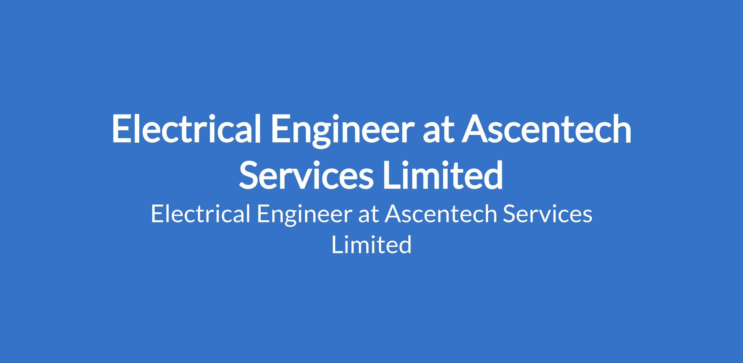 Ascentech Services Limited is recruiting to fill the position of: Electrical Engineer. The position is located in Obanikoro, Lagos State. Salary: N150,000 N200,000 monthly. Interested candidates should possess an HND / B.Sc. in Electrical Engineering or related fields with 25 years experience in a manufacturing environment.