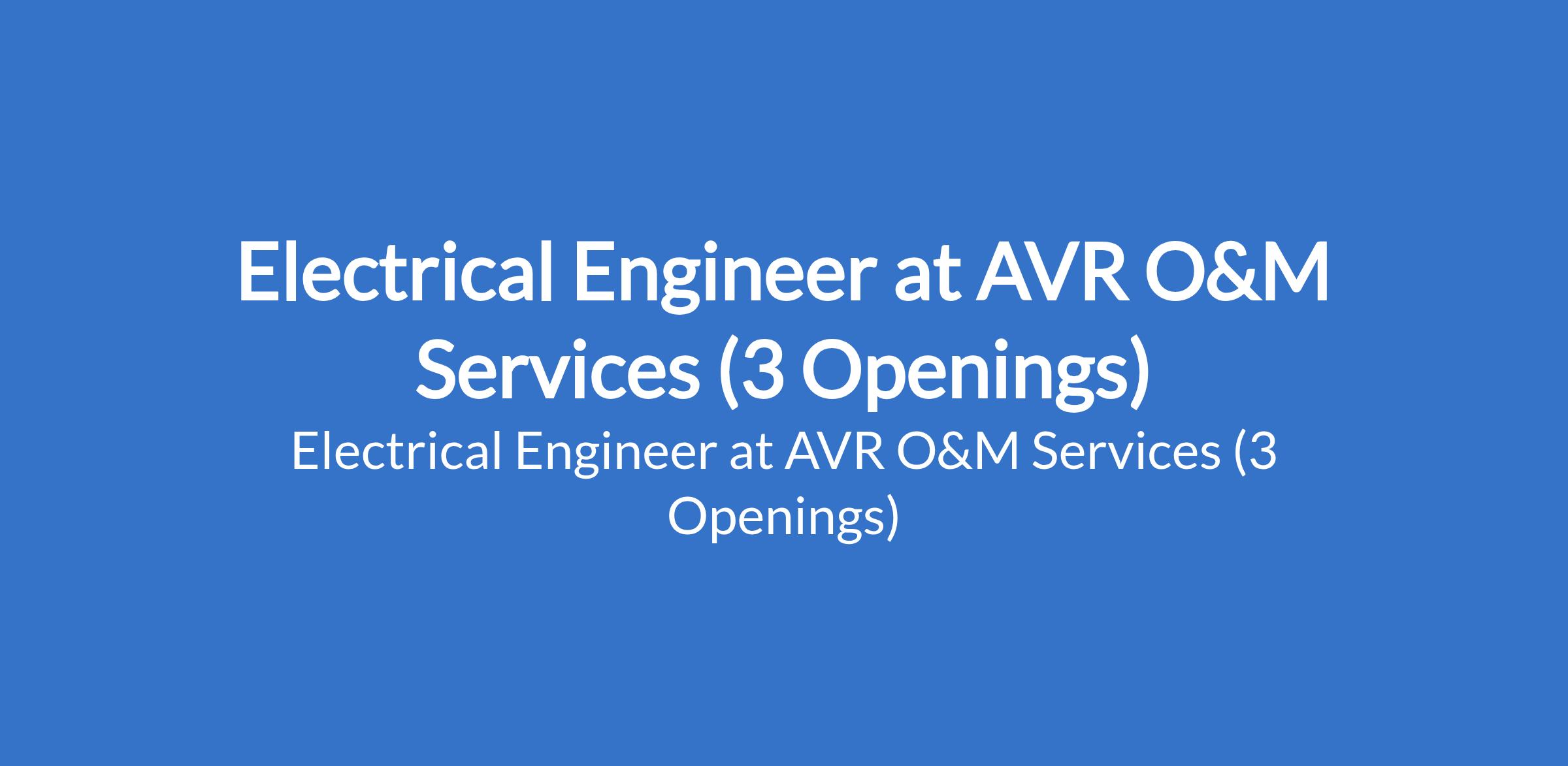 AVR O&M Services is recruiting to fill the position of: Electrical Engineer. The position is located in Kano State. Interested candidates should possess a relevant qualification with at least 5 years experience in operation & Management (O&M) in power plant.