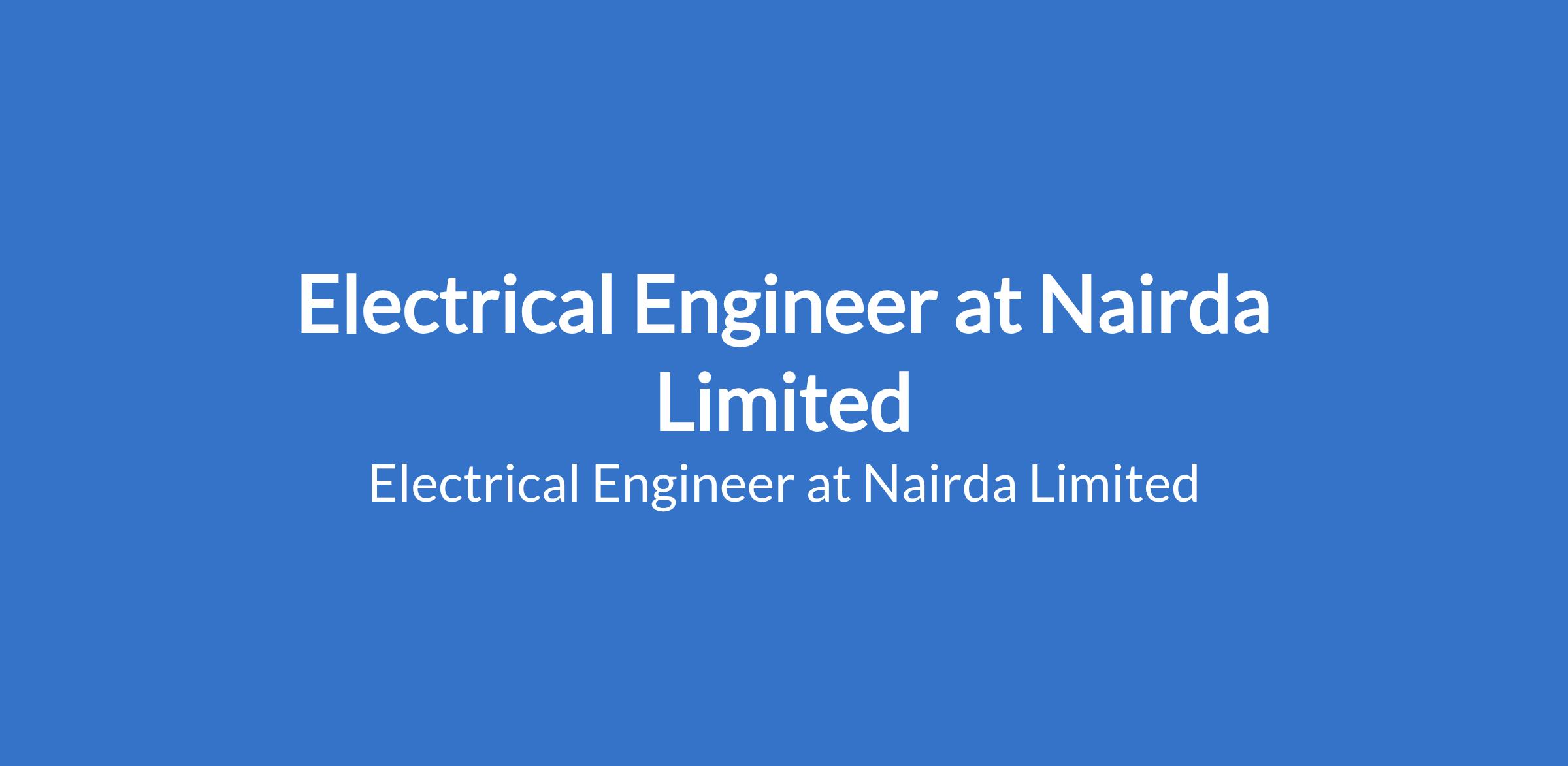 Nairda Limited is recruiting to fill the position of: Electrical Engineer. The position is located in Abuja. Interested candidates should possess relevant qualifications with 5 yearsor moreof experience in hands-onelectricalsystems engineering design including production construction documents demonstrating ability to completeelectricalsystems analysis, design, calculation and report writing.