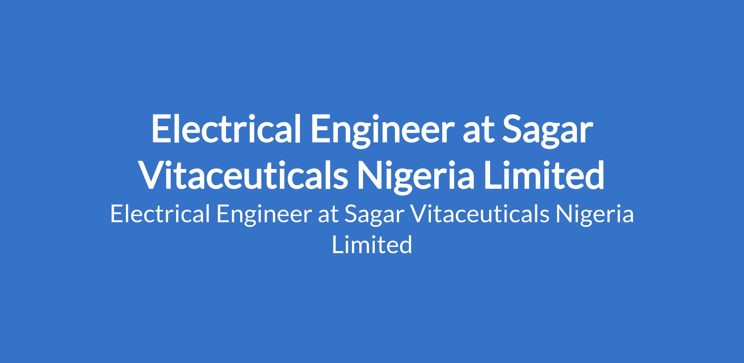 Electrical Engineer at Sagar Vitaceuticals Nigeria Limited