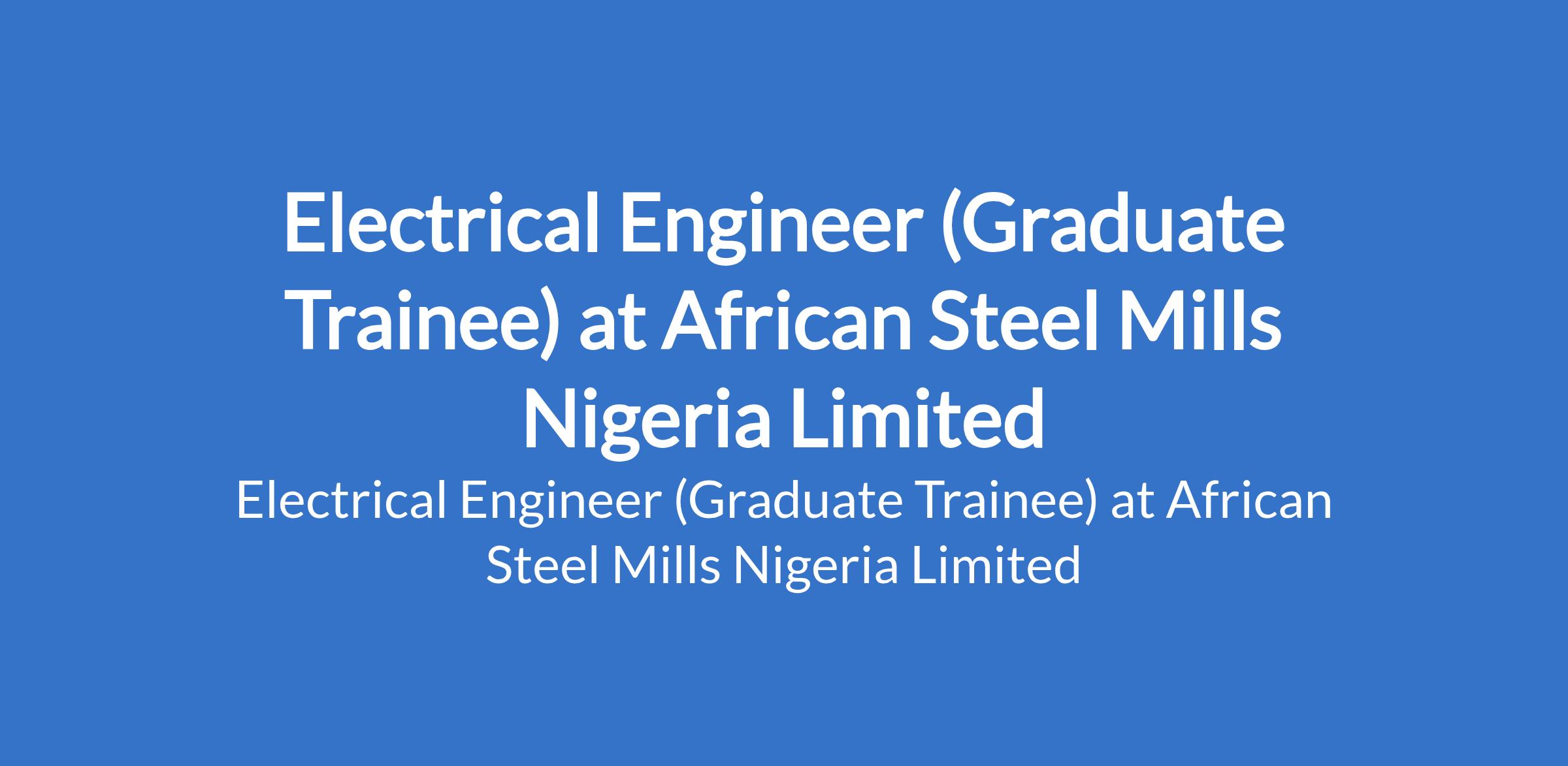 African Steel Mills Nigeria Limited is recruiting to fill the position of: Electrical Engineer (Graduate Trainee). The position is located in Lagos State. Interested candidates should possess a minimum of Bachelor of Engineering (B.Eng) in Electrical Engineering.