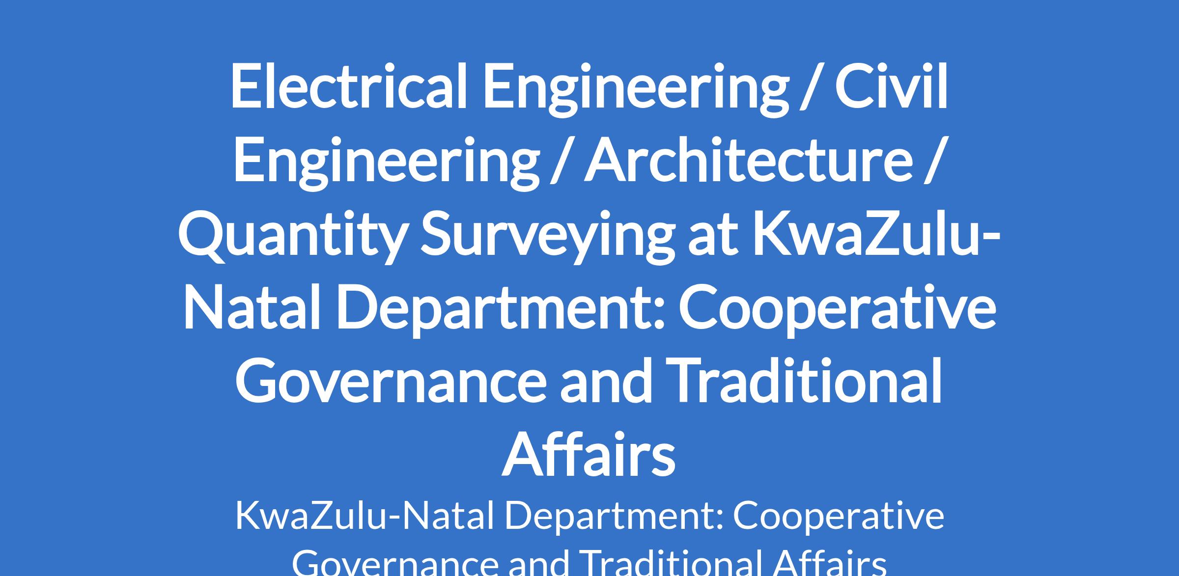 Electrical Engineering / Civil Engineering / Architecture / Quantity Surveying at KwaZulu-Natal Department: Cooperative Governance and Traditional Affairs