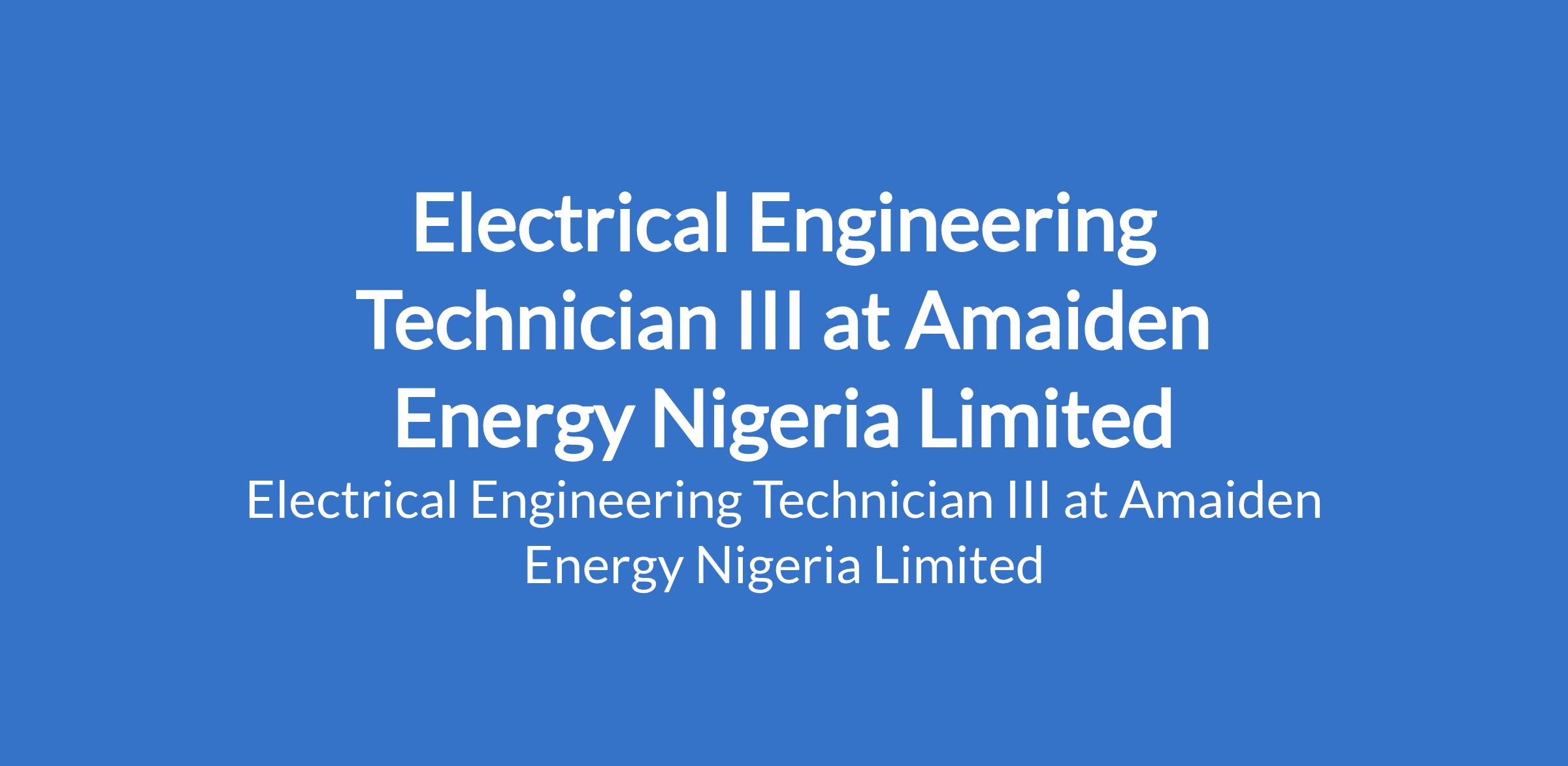Amaiden Energy Nigeria Limited is recruiting to fill the position of: Electrical Engineering Technician III. The position is located in Port Harcourt, Rivers State. Interested candidates should possess relevant qualifications with previous experience in a closely related position.