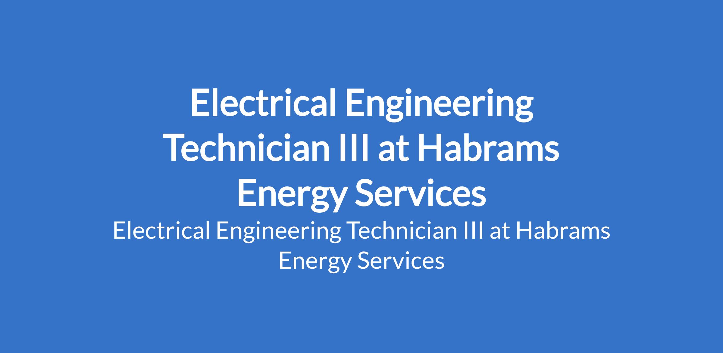 Electrical Engineering Technician III at Habrams Energy Services