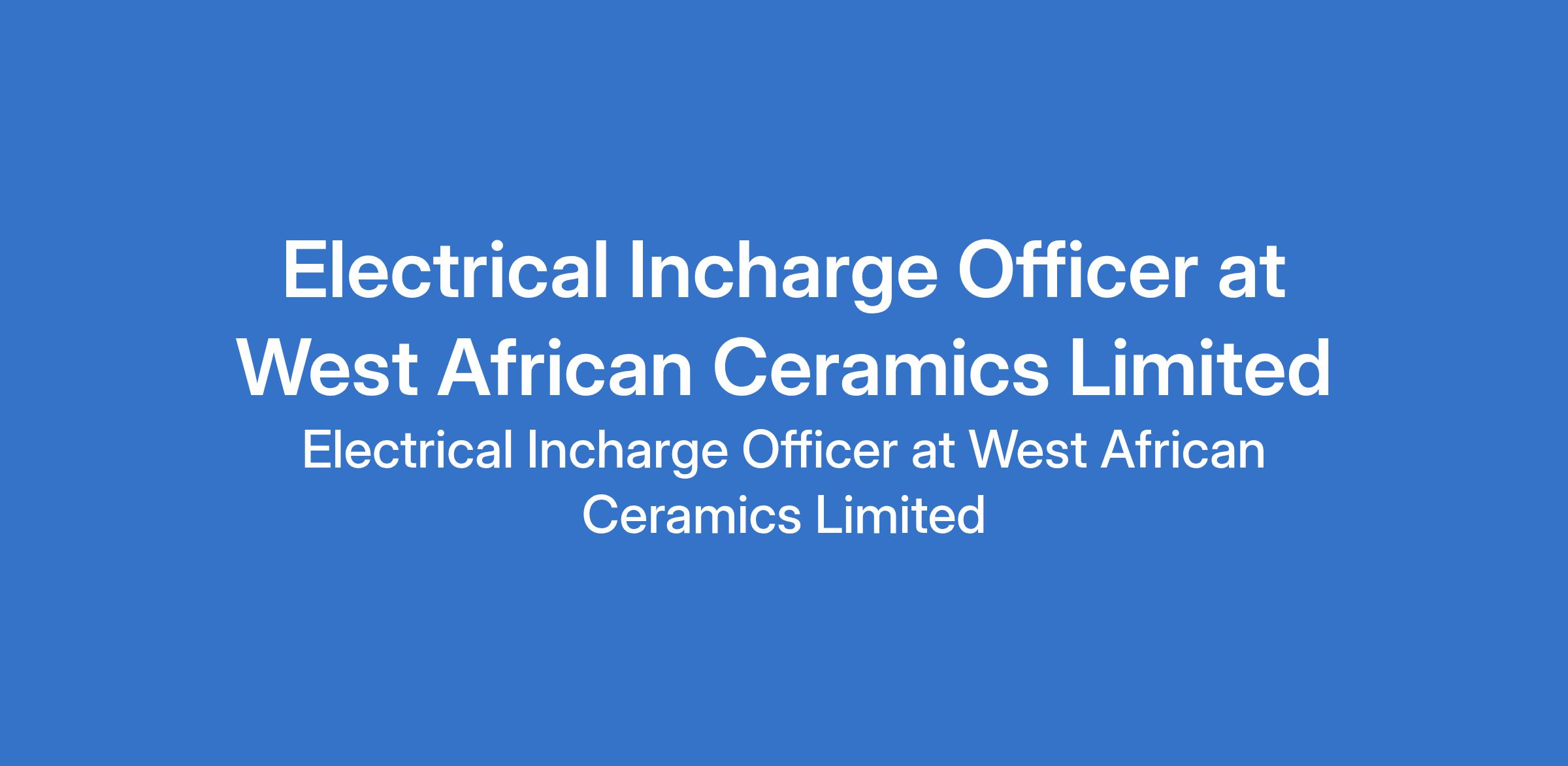 West African Ceramics Limited is recruiting to fill the position of: Electrical Incharge Officer. The position is located in Ajaokuta, Kogi State. Interested candidates should possess a Diploma / Degree in Electrical Engineering or related field with 5+ years of experiencein electrical maintenance and operations, preferably in manufacturing/industrial plants.